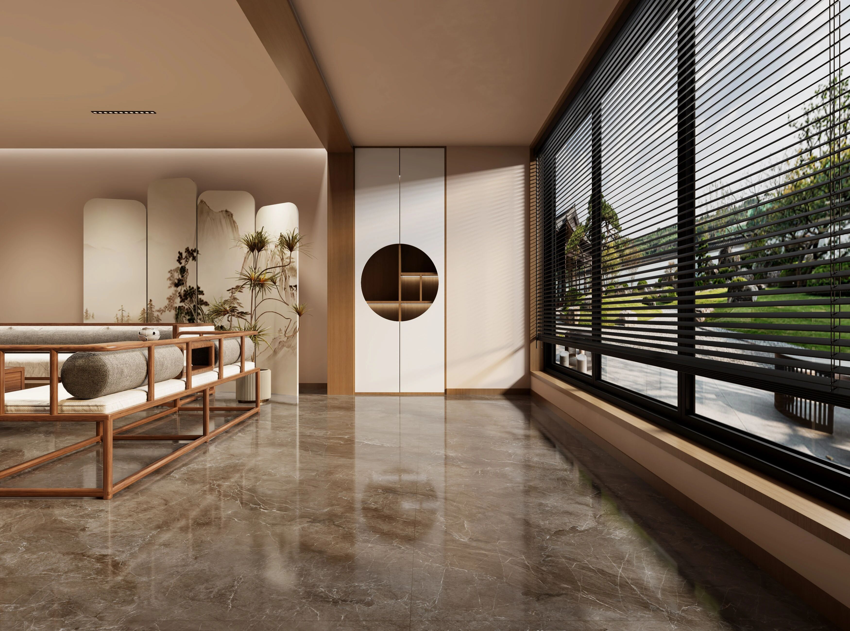 800×1350mm规格,汲取中国传统水墨画"墨分五色"的精髓,通过"留白"与"墨韵"的虚实相生,隐藏的细微波墨纹呈现"远山如黛,近水含烟"的东方美学意境。