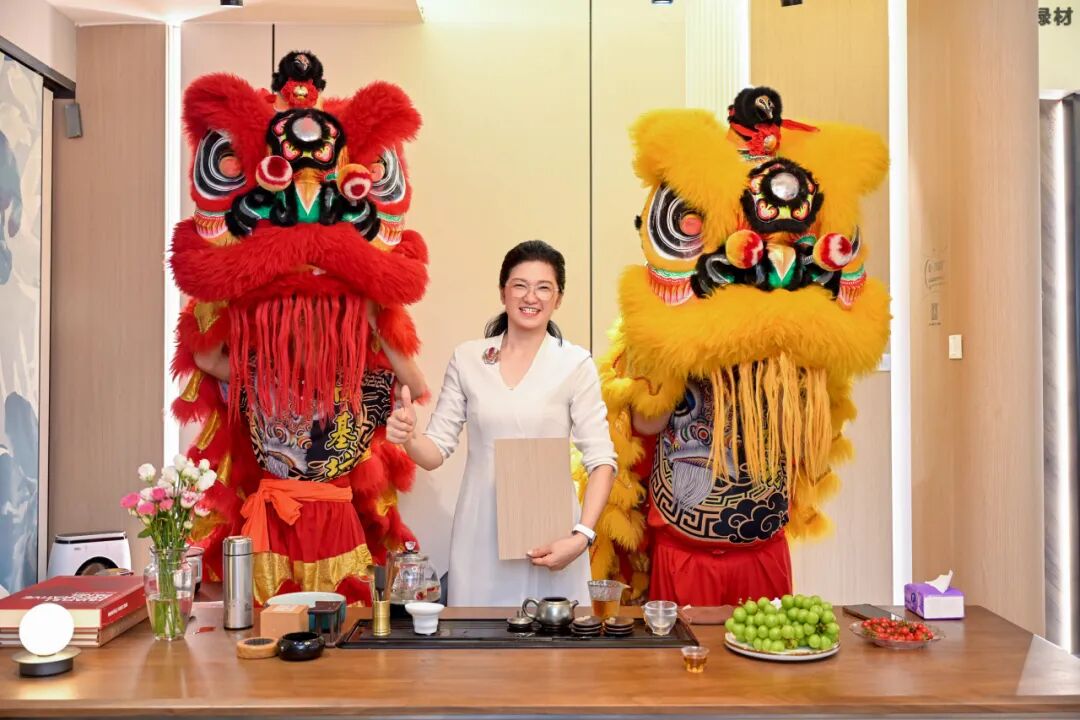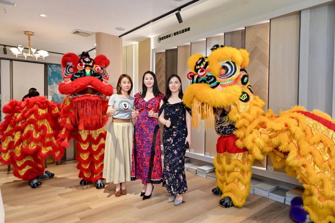 在热烈的掌声中,领导嘉宾为瑞狮点睛。朱砂落笔,点睛纳吉,雄狮瞬间焕发神采,腾跃起舞,寓意新明珠绿材佛山格莱美专卖店财源广进、吉祥兴旺,现场洋溢着吉祥欢腾的热烈气氛。