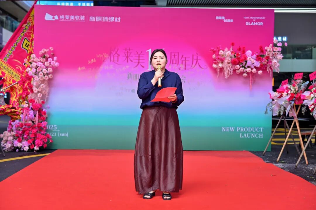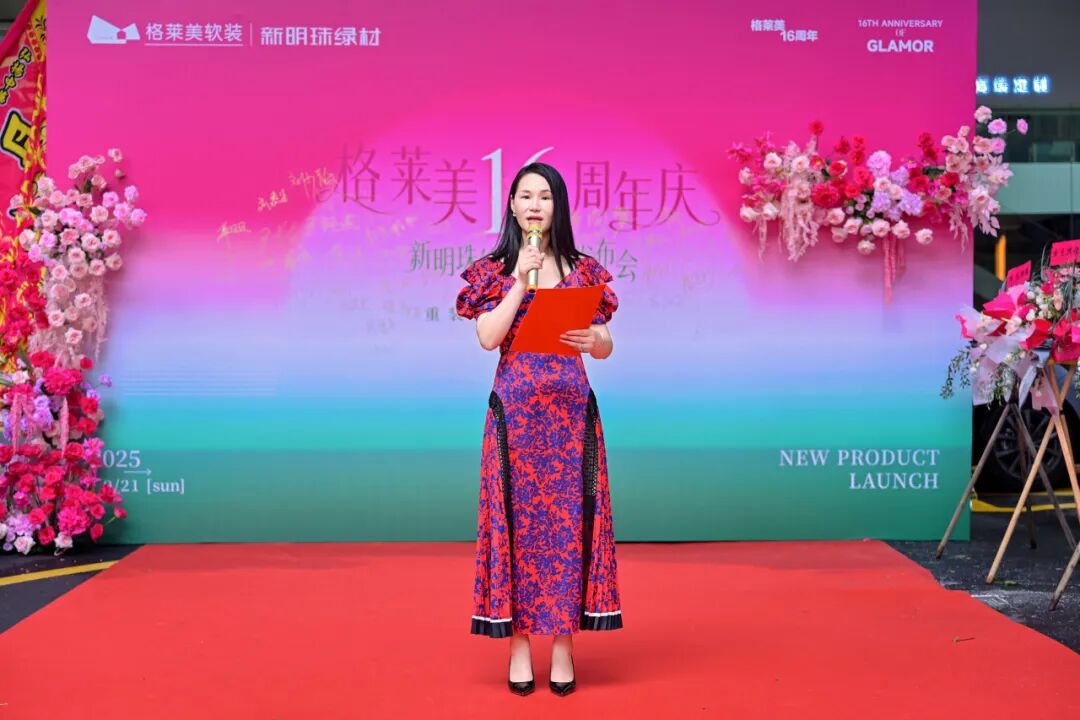 佛山格莱美专卖店总经理卢韶华,对现场嘉宾的到来表示衷心感谢,并表示在新明珠绿材引领下,门店将依托丰富产品、场景体验与全渠道服务,打造沉浸式绿色生活空间,让消费者切身感受绿色材料缔造的美好生活。