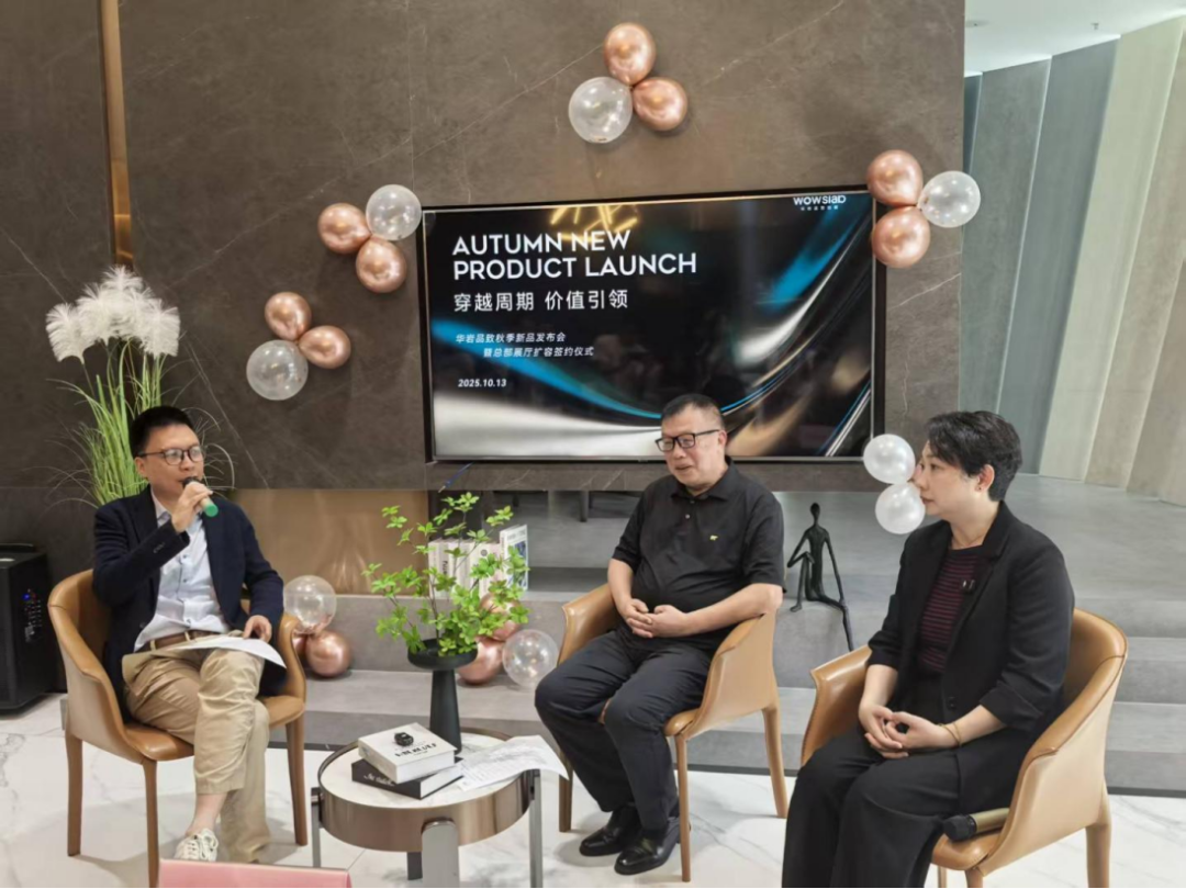 2025年10月13日,华岩品致岩板“穿越周期、价值引领”2025秋季新品发布会暨总部展厅扩容签约仪式在品牌总部展厅一楼盛大举行。中陶城集团副总裁、中国陶瓷卫浴总部总经理汤洁明女士,佛山市陶瓷行业协会会长、行业权威尹虹博士,汉工华匠董事长武吉财先生,华岩品致品牌联合创始人、董事长伍剑锋先生,品牌联合创始人郭聪先生及行业主流媒体齐聚现场,共同见证这场集新品发布、战略签约、思想碰撞于一体的行业盛会。