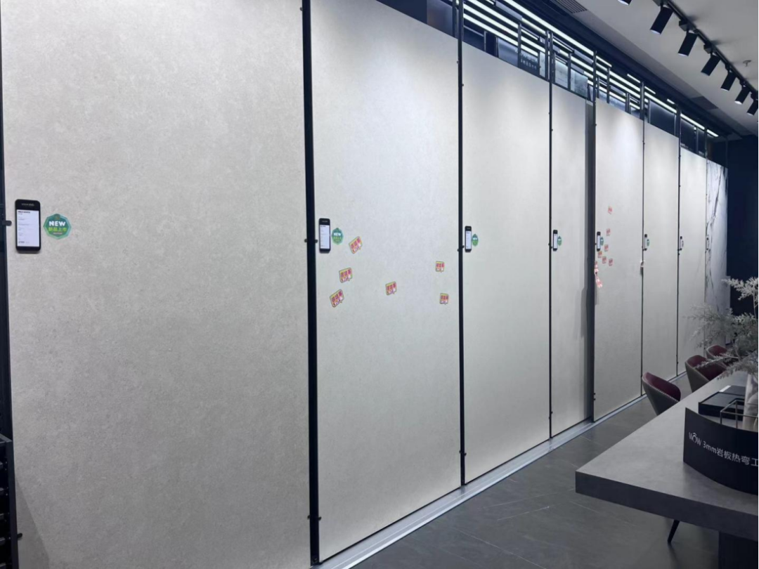 谈及品牌核心竞争力,伍剑锋董事长强调:“华岩品致的根基在于原创与品质。我们拥有国际视野的品牌基因和坚守工匠精神的团队,始终以原创设计领跑行业,产品质量工艺媲美甚至超越进口品牌。像洞石、莱姆石、砂岩、微水泥等系列,连设计师都开玩笑说‘华岩品致预判了博洛尼亚的预判’。”他进一步介绍,目前品牌已构建十一大工艺、七大系列、四个厚度、十大规格的全维度产品矩阵,260+标准SKU搭配数字化高效仓储系统,能实现72小时极速交付,为经销商与设计师提供强大赋能。