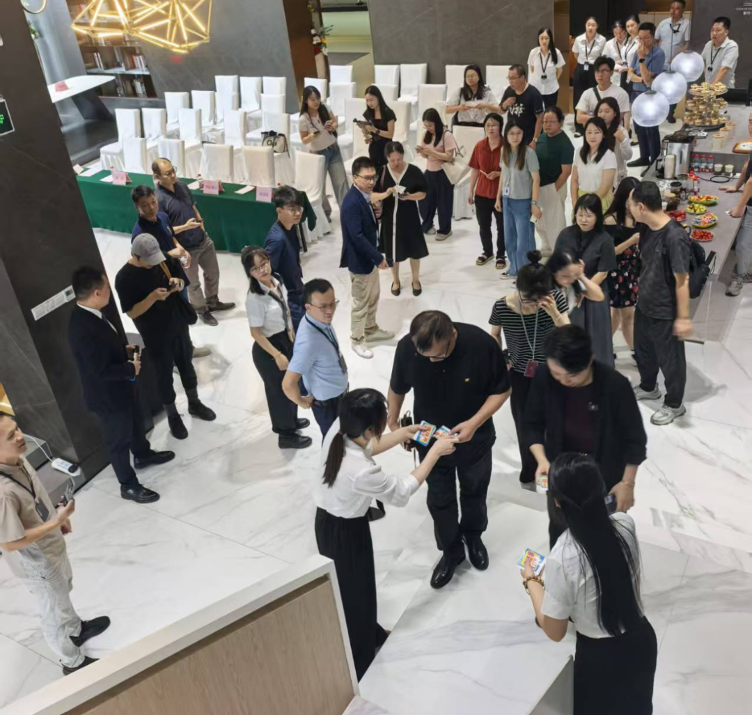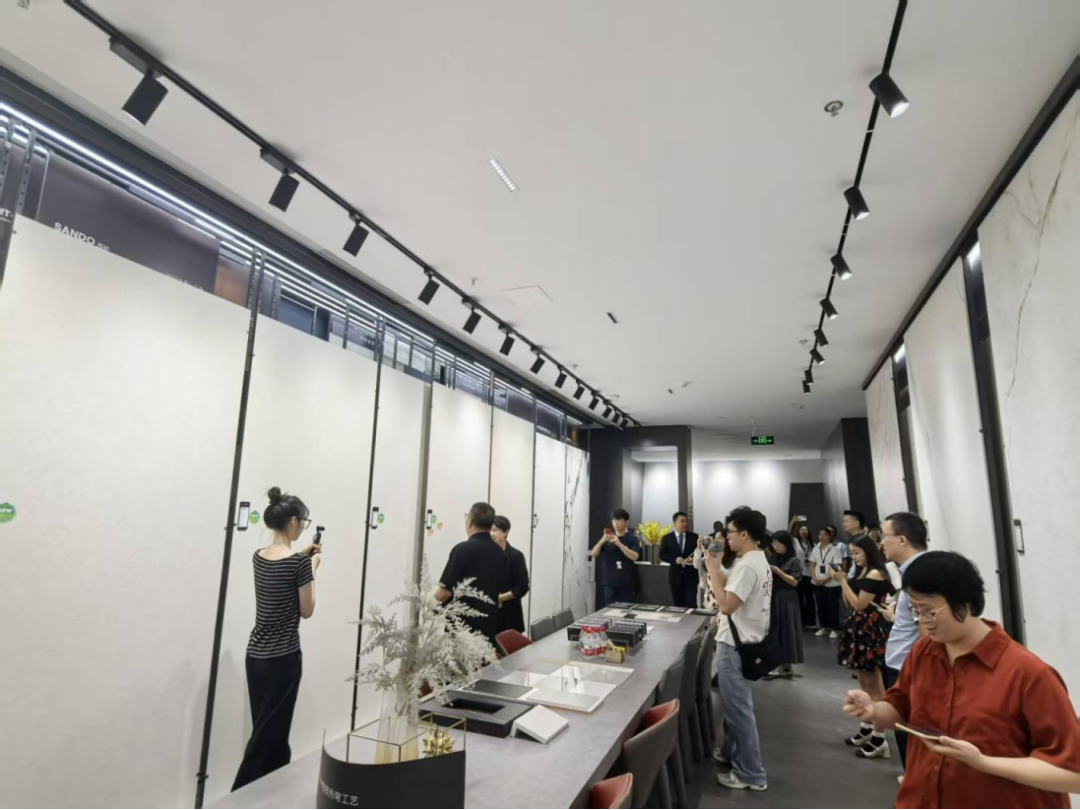 活动现场,嘉宾与媒体在工作人员引导下沉浸式品鉴2025秋季新品,近距离感受“奥克兰”的天然纯净、“西砂”的丝滑温润、“细纹鱼肚金”的奢华质感,亲身验证华岩品致的产品实力。现场还通过互动点赞评选出“最受欢迎新品”,氛围热烈非凡。