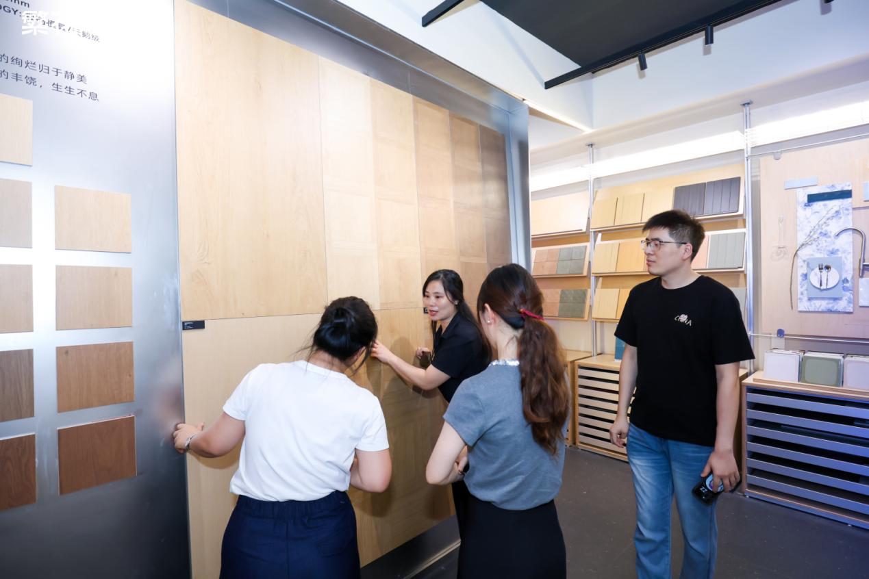在伍总与徐老师的亲自导览下,来宾们深入展厅,直观感受艺术砖、石纹砖、墙艺砖与进口砖如何在同一空间中和谐共生,创造出层次丰富、情感饱满的场景。