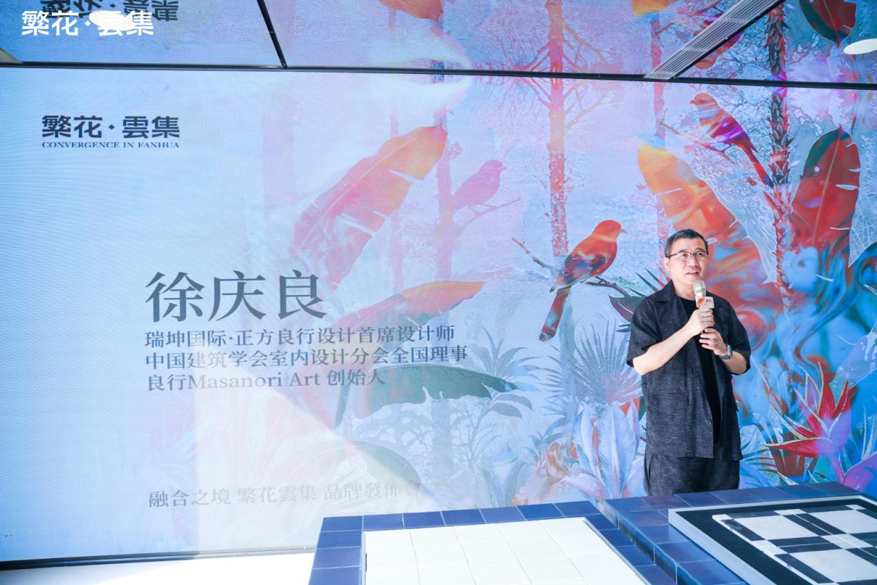 此外,瑞坤国际·正方良行设计首席设计师徐庆良先生也分享了展厅的设计理念,他表示本次为繁花·雲集打造这个融合概念馆对他是一个很大的挑战,他们想做的是从外到内打造这个场域,把整个空间系统结合在一起,通过设计将“融合”的理念转化为可感知的空间诗学。