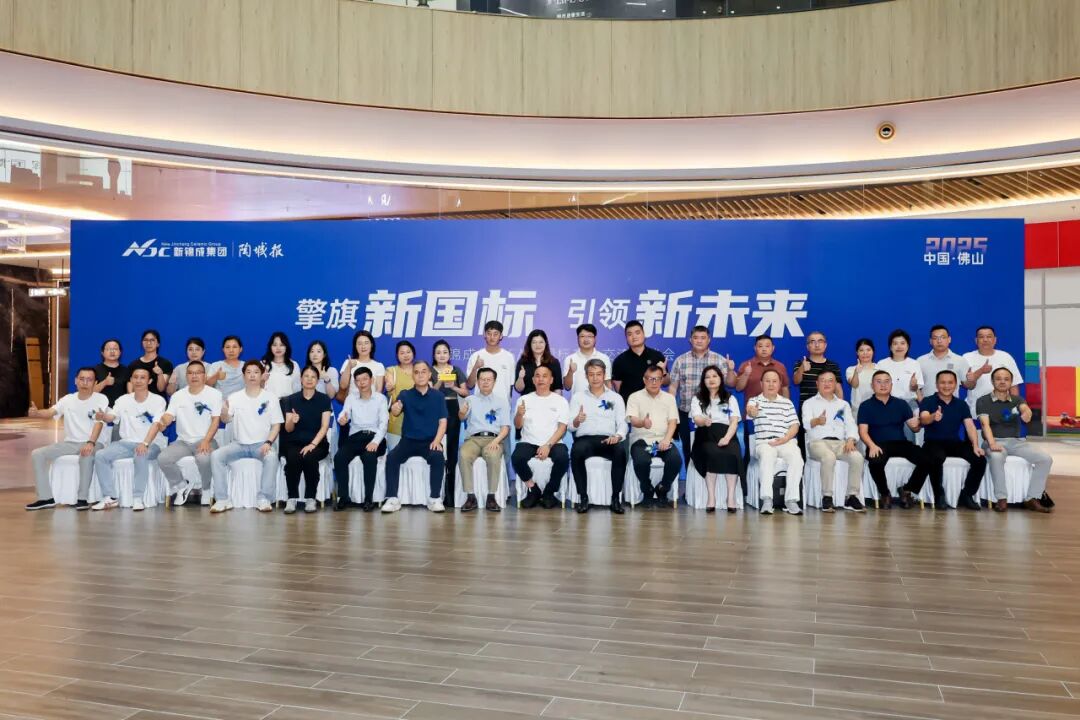 2025年10月14日,广东佛山,由新锦成集团与《陶城报》联合主办的“擎旗新国标,引领新未来——新锦成集团5A新国标产业交流座谈会”在新锦成集团总部举行。