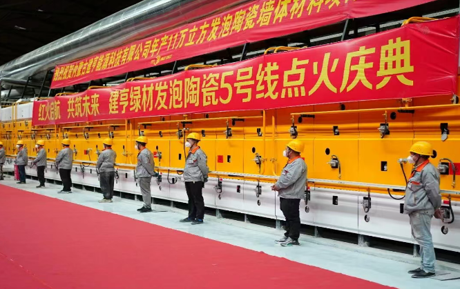 9月28日,内蒙古建亨绿材第五条发泡陶瓷生产线点火投产。此次点火使建亨绿材的发泡陶瓷设计年产能达50万立方米,居全球同行业产能首位。该生产线采用德力泰第六代FOAMAX三层装载隧道窑,窑长468.3米,刷新行业同类窑炉长度纪录,主要生产大规格发泡陶瓷,年产能达11万立方米。