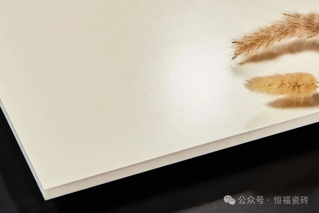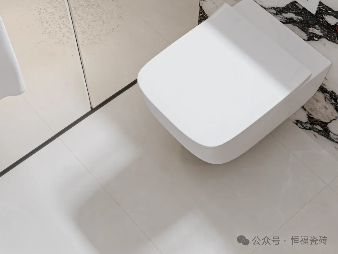 色调像刚打发的淡奶油,自带细腻柔光,没有纯白的冷硬,也没有米白的厚重,釉面星光在自然光下若隐若现,仿佛给地面裹了层 “柔雾滤镜”。