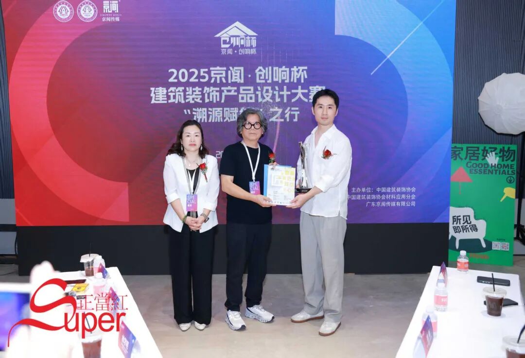 随后,中国建筑装饰协会材料应用分会秘书长梁宏瑀与设计名家林学明代表极具权威性的 “2024 京闻创响杯设计大赛” 为 Felconi 颁发设计银奖(第二名),并现场授予 30000 元人民币奖金。林学明老师从设计专业角度补充:“Felconi的作品打破‘岩板只是材料’的刻板印象,将其升华为‘承载艺术表达的载体’,这种对设计边界的突破,正是行业需要的创新活力。” 这一奖项的颁发,不仅是对 Felconi 设计实力的嘉奖,更标志品牌创新路径与国家 “设计赋能产业” 战略同频。