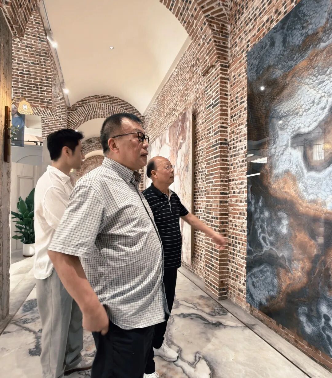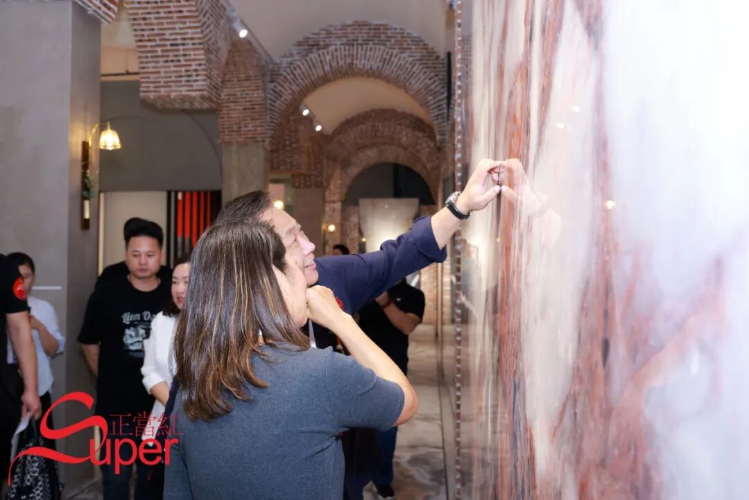 随后,广东省佛山市陶瓷行业协会会长尹虹博士作为首位登台嘉宾,从区域产业升级视角,高度肯定 Felconi 在岩板领域的创新实践,认为此次展厅将意大利艺术基因与现代岩板工艺深度融合,不仅为岩板行业打开了”艺术化应用“的新美学视野,更填补了高端装饰材料”美学质感与实用性能兼备“的市场空白,期待品牌未来持续为产业注入创意动能,引领岩板行业向‘设计驱动、技术突围’的更高维度发展。 尹虹博士同时表示:从品牌定位来看,“正当红”弗格尼岩板深耕“原创设计理念+中国市场需求”的融合创新,走出了一条差异化发展之路,这种以设计创新为核心驱动力的模式,不仅契合国家推动制造业高质量发展的战略导向,更为行业破解“同质化竞争”难题、探索转型新路径提供了宝贵参考。