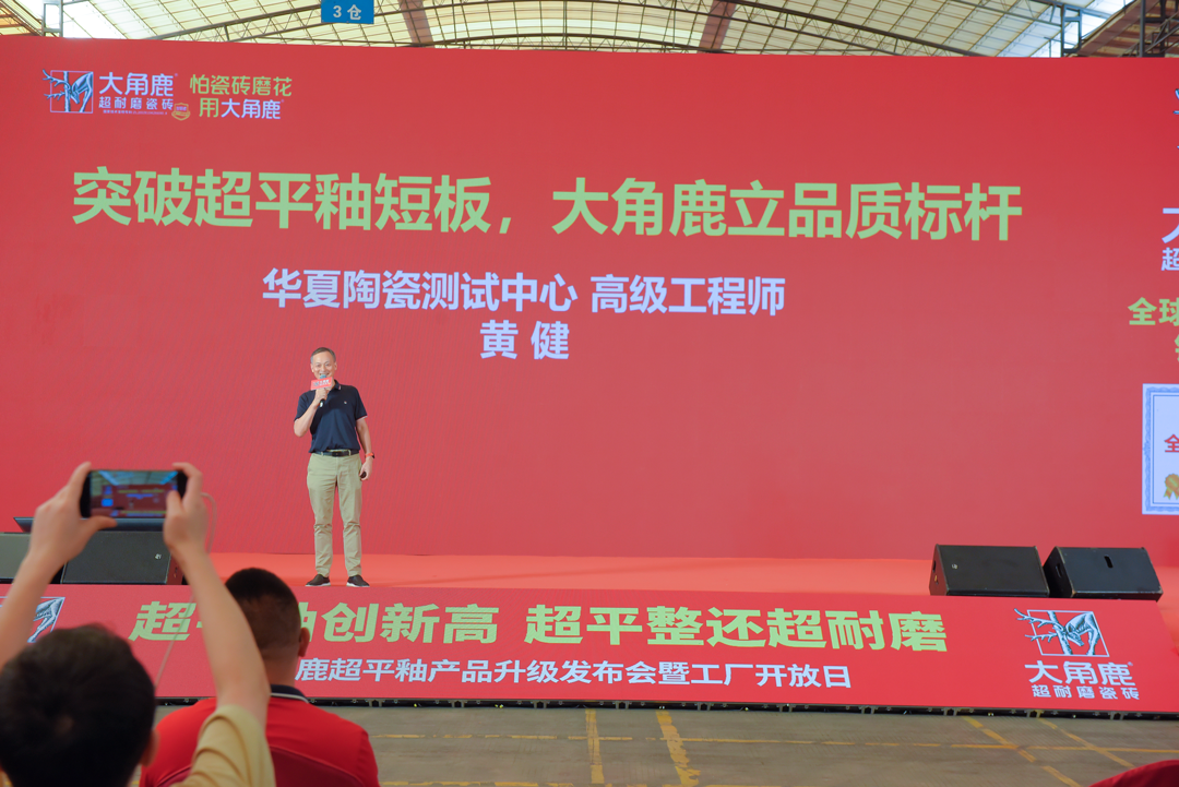 华夏陶瓷测试中心高级工程师 黄健也表示,大角鹿超平釉瓷砖的平整度与耐磨性均达到行业领先水准,成功打破“平与耐磨”难以兼得的行业魔咒。这一突破,让瓷砖的美学体验与功能性能真正合一,树立了行业品质新标杆。