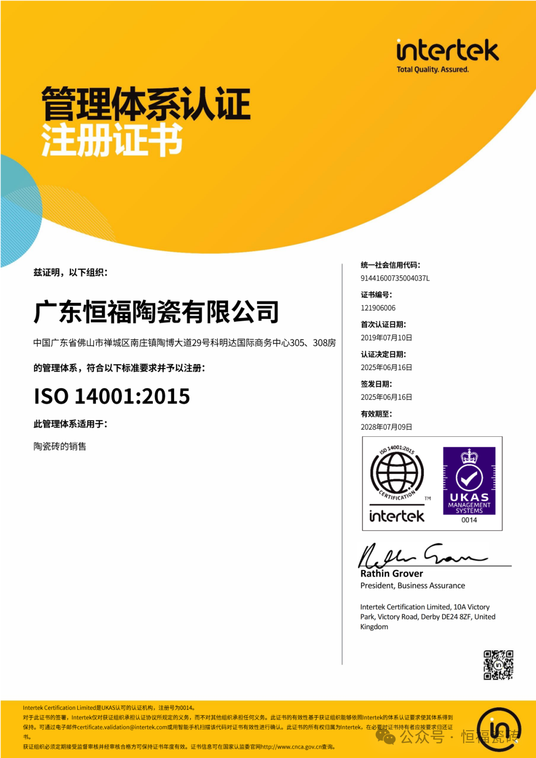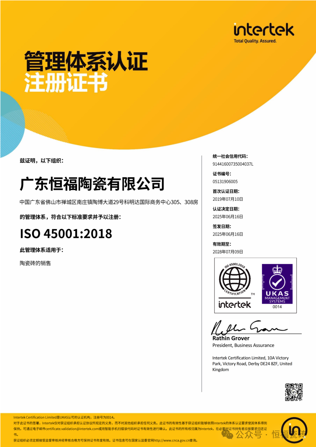 在过去的岁月里,恒福瓷砖凭借着不懈的努力与追求,先后荣获了诸多荣誉与奖项。