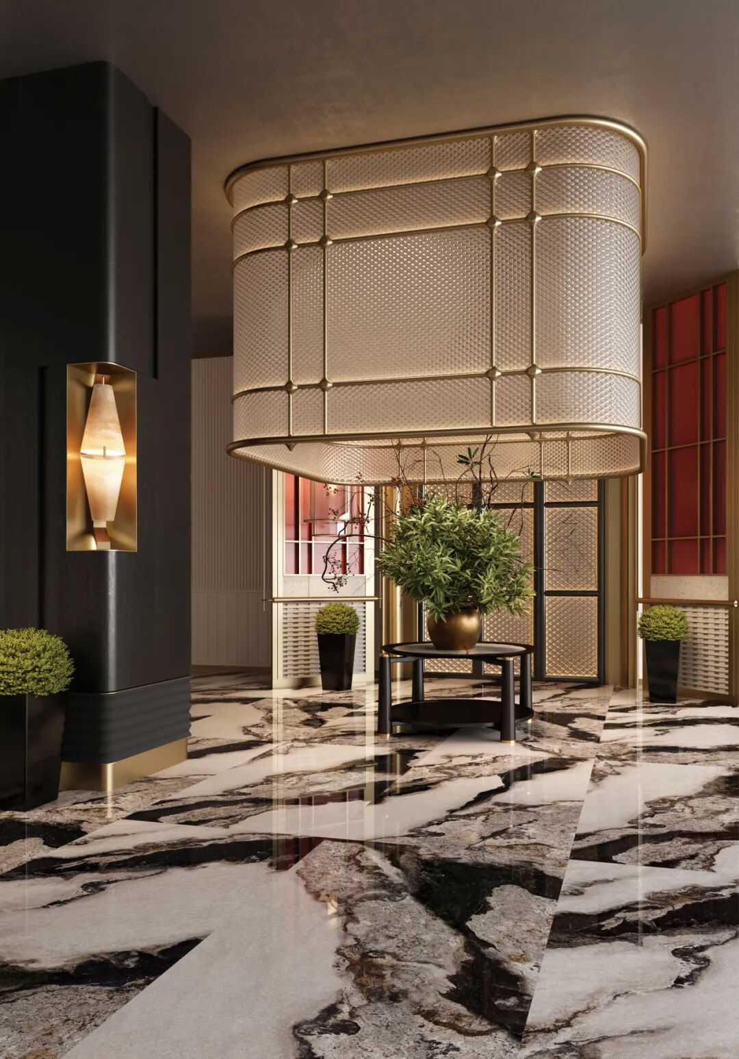 以细腻肌理为笔,以光影韵律为墨,传承精湛工艺,采用精选高纯度原料烧制,铸就50°超白胚体,12MM加厚胚体以及子母砖设计的灵活多变完美融合,塑造灵动自由的家居空间。