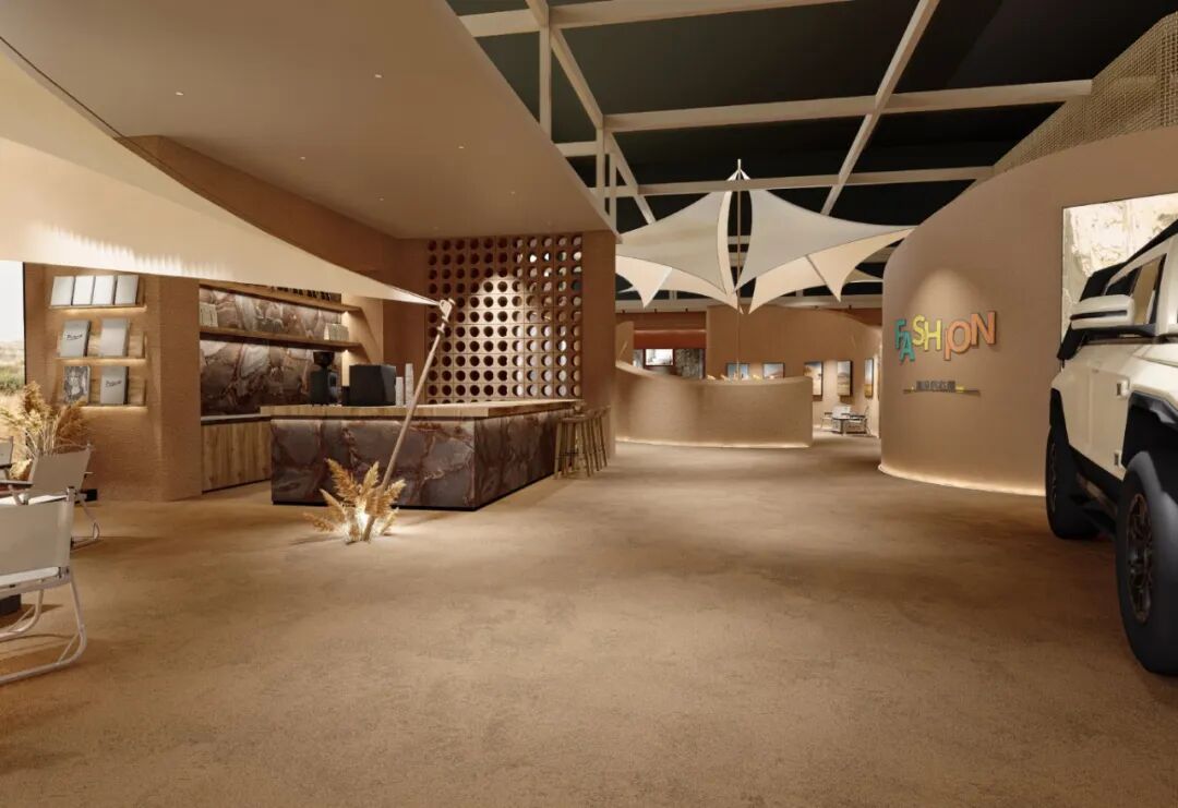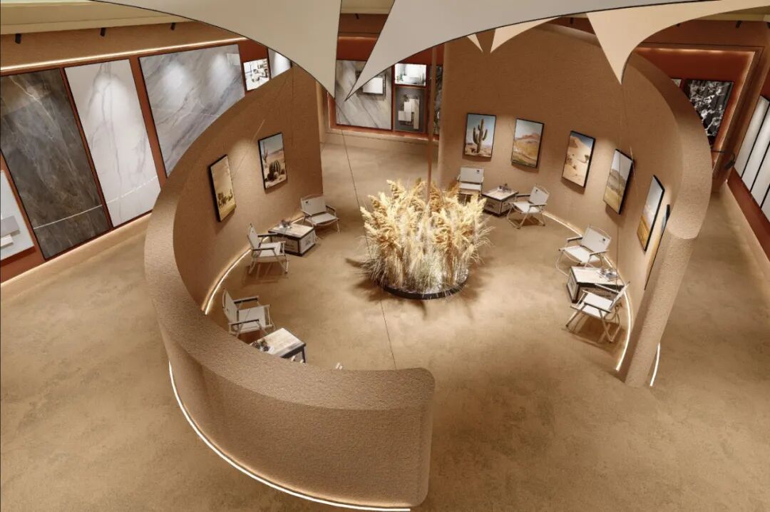 将瓷砖材料的冷峻质感与矿石的野性之美并置,瞬间将观众带入“野奢·崎境”的沉浸场景。