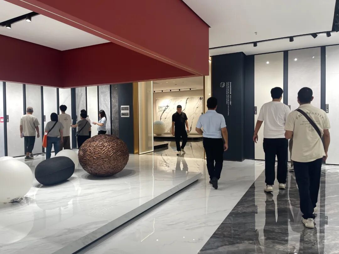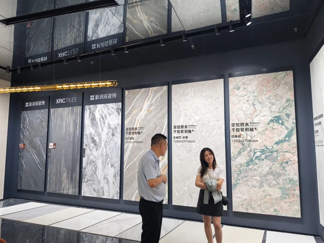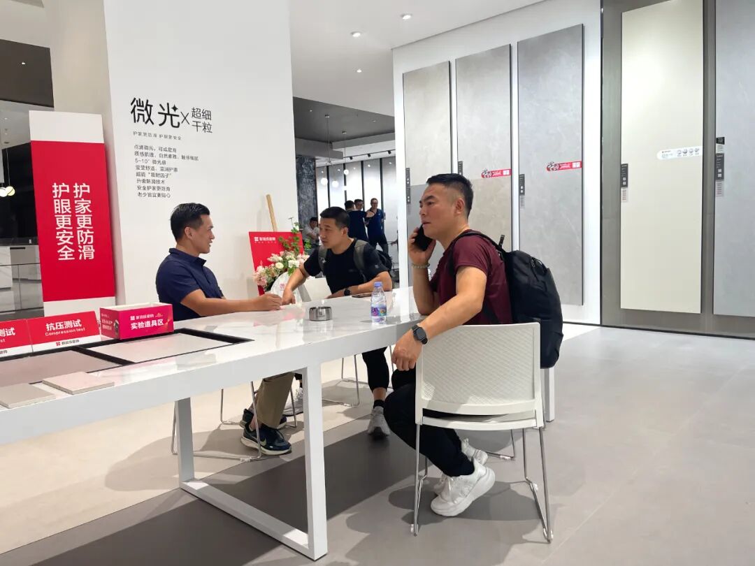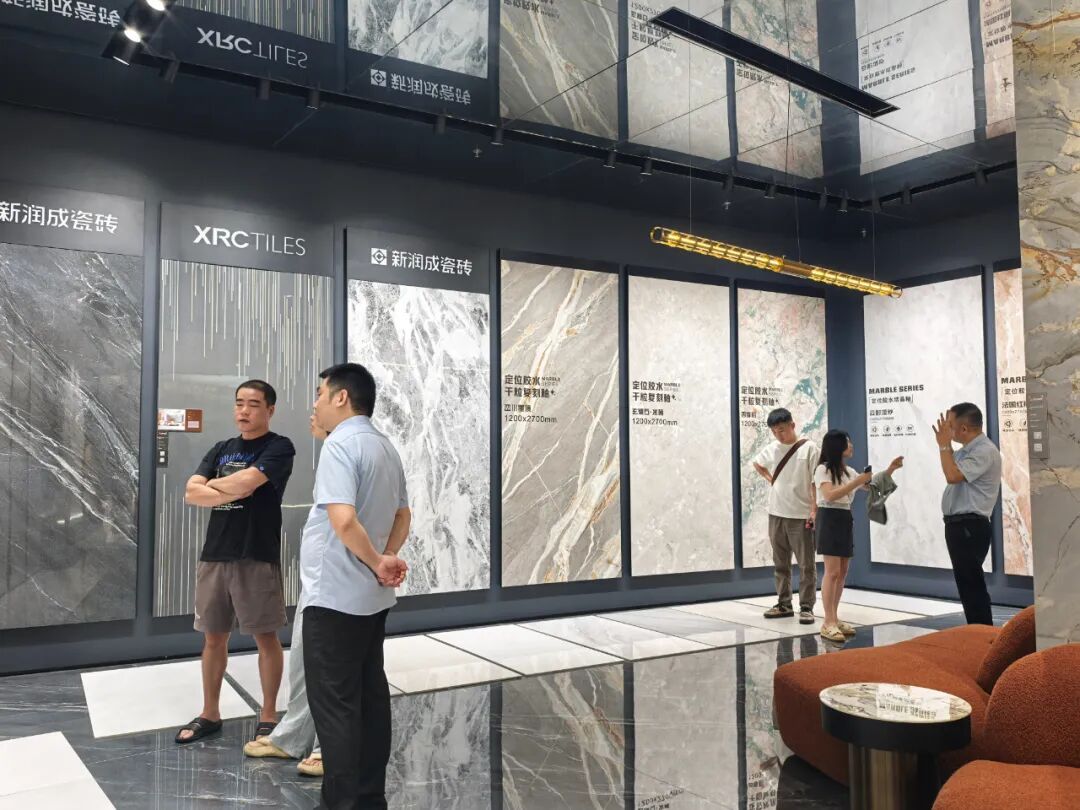 陶博会第一天,来自全国各地的经销商、设计师纷纷亲身体验,并对新润成瓷砖表现了极大的兴趣。不少人在与工作人员深入交流后,对新品的创新工艺与质感表示点赞。