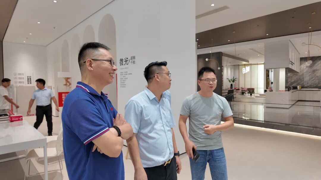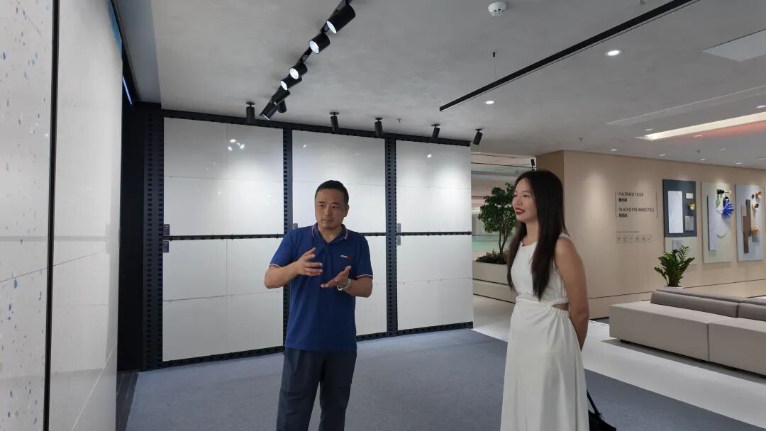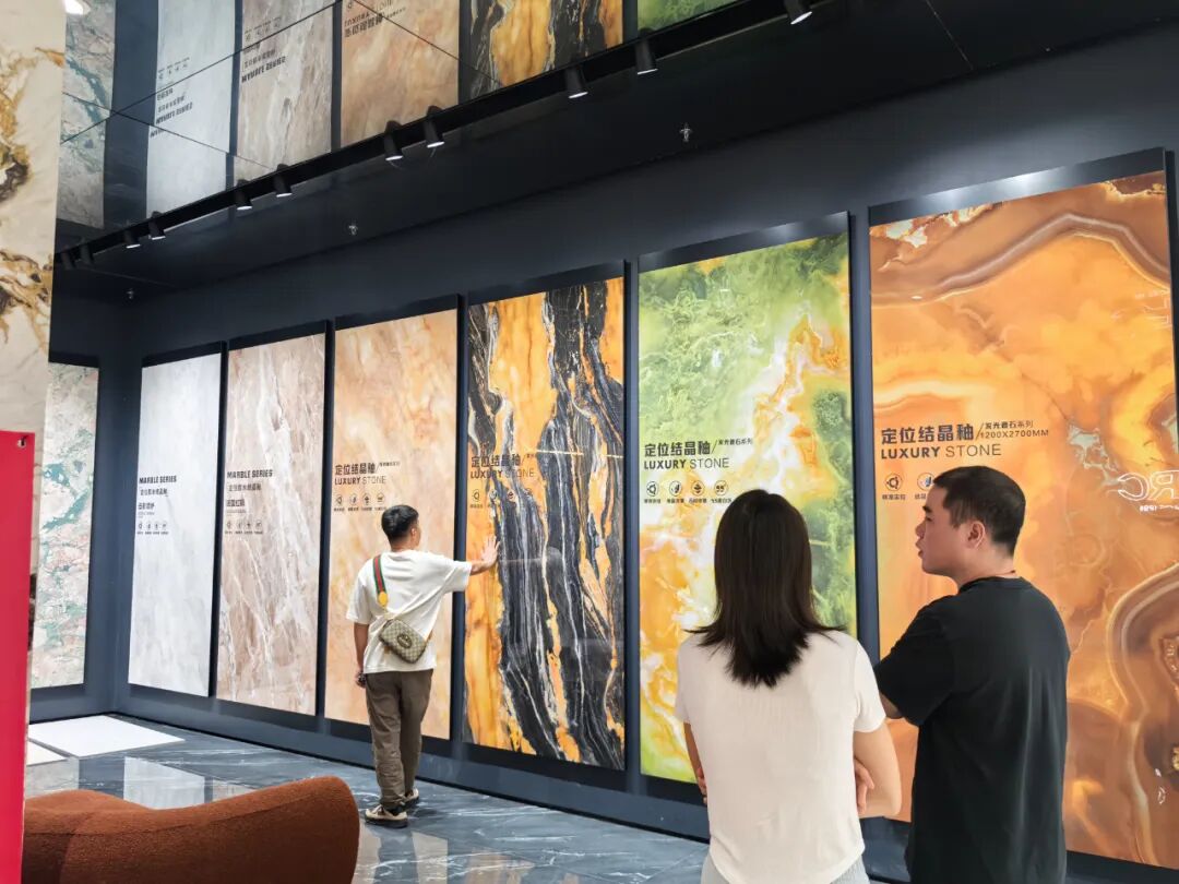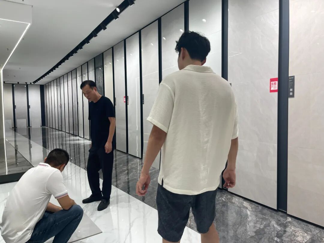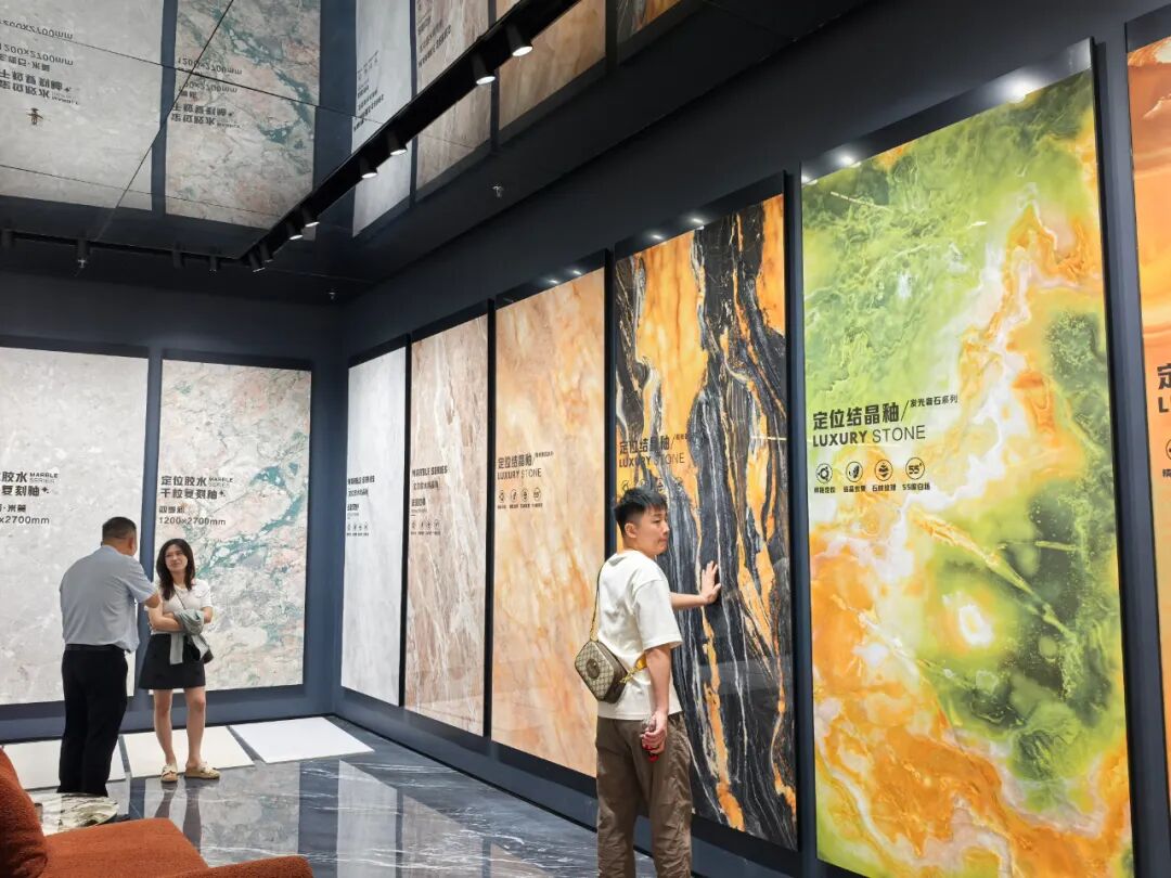 陶博会第一天,来自全国各地的经销商、设计师纷纷亲身体验,并对新润成瓷砖表现了极大的兴趣。不少人在与工作人员深入交流后,对新品的创新工艺与质感表示点赞。