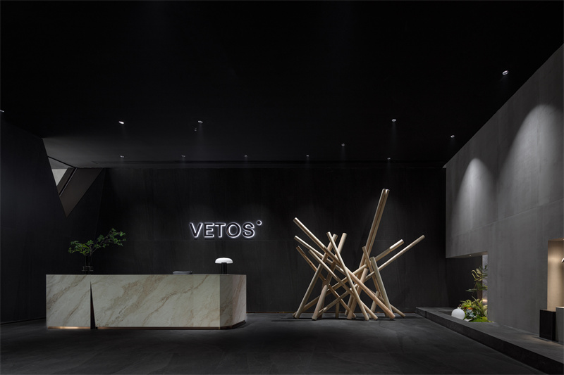 他阐释道,展厅大胆运用暗色基调,让产品成为空间的主角。同时,将品牌LOGO中的“V”符号解构为视觉韵律,营造出丰富的层次与动态张力。