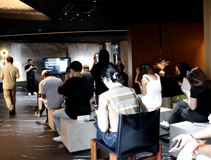 在自由探店环节,媒体嘉宾深入体验了VETOS CASA五大产品系列——【艺象】、【石间】、【地脉】、【花语】和【木韵】。从1200X2800mm、900X2600mm、900X1800mm、750X1500mm和600X1200mm,每一款产品都在光感矩阵的映衬下,展现出独特的魅力。