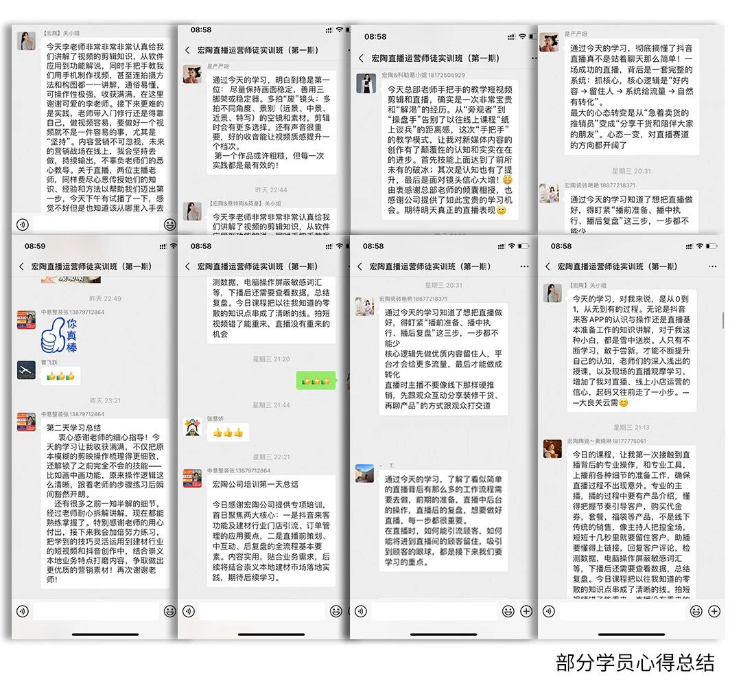 实训期间,学员们展现出高涨的学习热情,课上认真记录、踊跃提问,课后积极交流、分享心得。大家普遍反馈,此次培训精准切中门店直播中的“推流难、转化低”等痛点,通过三天的系统学习,不仅掌握了实用技能,更重塑了新媒体营销思维!