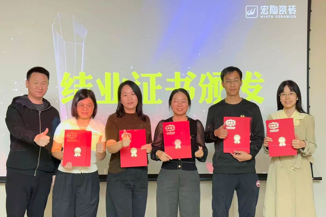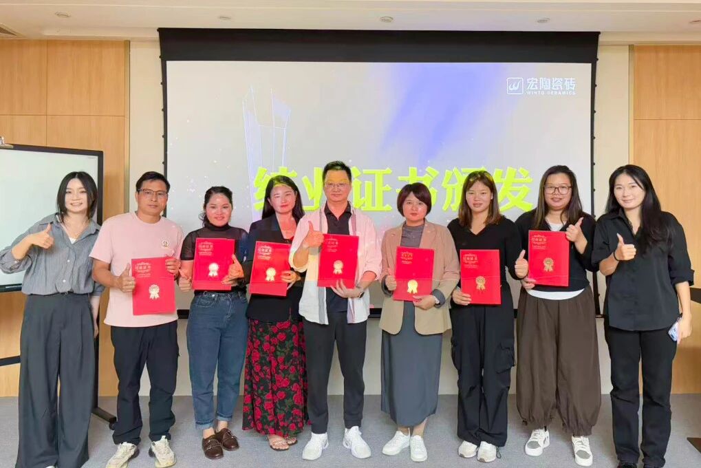 10月24日下午,结营仪式暨结业考核顺利举行。经过三天的系统学习与实战锤炼,全体学员均圆满完成全部课程内容,凭借出色的表现顺利通过考核。在热烈的掌声中,宏陶瓷砖总部为学员们颁发结业证书,见证他们的成长与蜕变。