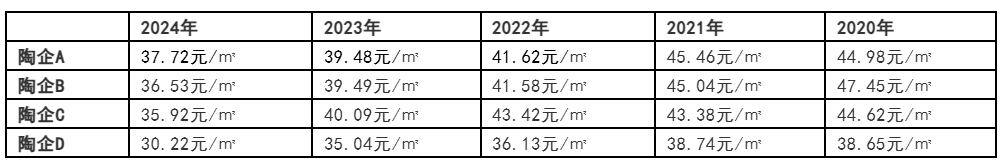公开数据显示,多家大型陶企产品价格持续下滑,2023—2024年降幅尤为明显。其中,陶企B均价从2020年47.45元/㎡降至2024年36.53元/㎡,累计跌幅达23%;陶企A、C、D同期均价也显著下跌。这一趋势反映行业供需根本性变化:房地产需求收缩与产能过剩矛盾突出,价格竞争白热化。尽管头部陶企已调整渠道策略,收缩工程、提升经销占比,但零售增长未能带动价格回升,终端市场陷入深度内卷。面对利润持续压缩,陶企正通过推广高附加值产品、加强成本管控,并积极跨界新材料寻求突破。新明珠、欧神诺、鹰牌、东鹏、金意陶等企业纷纷布局新材赛道,试图打破行业边界,开辟新增长空间。