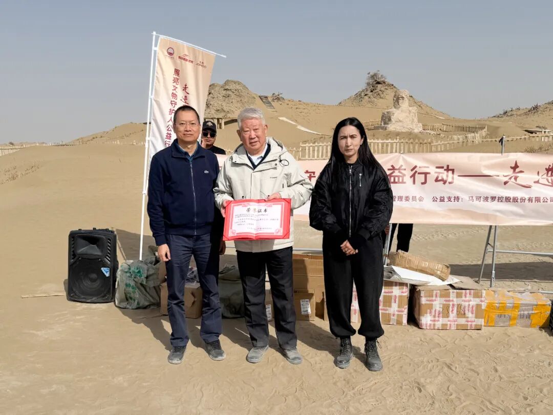 这份守护的责任与使命,正真实地落在了一群常年坚守于此的文物守护者肩上。在这片广袤而苍茫的土地上,他们与风沙为伴,在孤寂中默默守护着这片珍贵的文明秘境。此次公益行动,马可波罗控股以实际行动捐赠,助力改善文物守护者在沙漠腹地的工作与生活条件,为他们送去切实的支援与温暖。