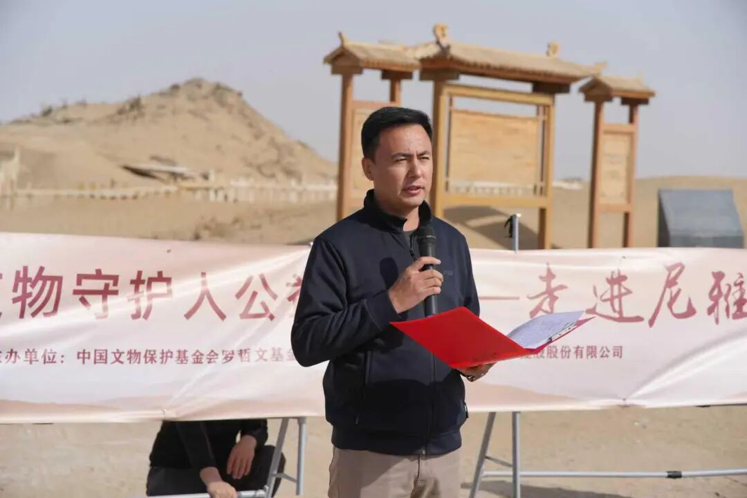 尼雅遗址文物守护人代表表示,作为国家级重点文物保护单位,自治区一直高度重视尼雅遗址文物保护事业,非常感谢此次马可波罗文化遗产保护公益行动捐赠,为遗址巡护工作带来了切实的便利支持。