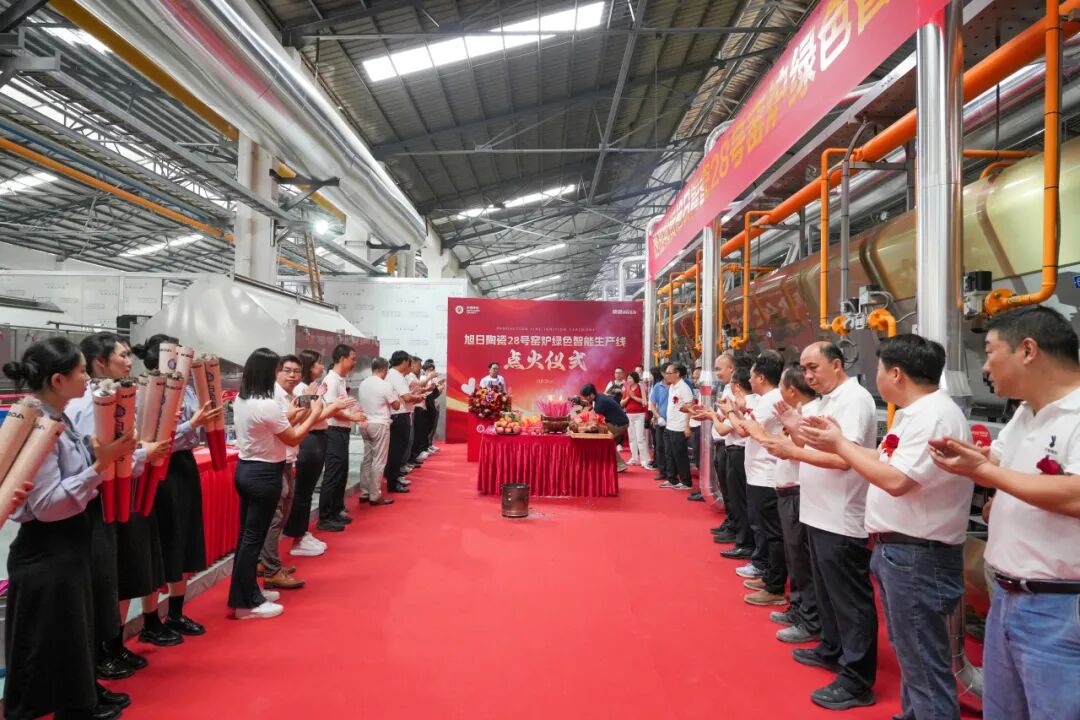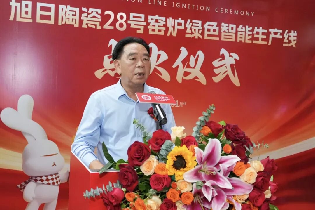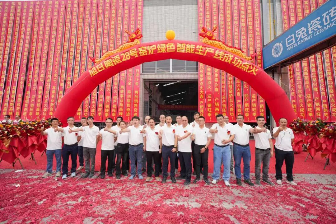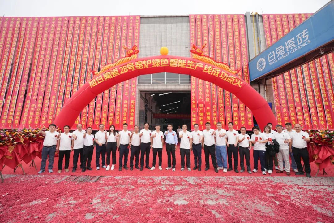 10月31日,珠海市斗门区旭日陶瓷有限公司(以下简称“旭日集团”或白兔瓷砖)28号窑炉绿色智能生产线点火仪式在珠海市白兔陶瓷有限公司隆重举行。旭日集团董事长黄英明,旭日集团总经理宁红军,旭日集团执行总经理、集团总厂厂长范怀瑞,科达制造股份有限公司销售总监裴树元,科达制造股份有限公司中南销区总经理舒建雄,佛山希望数码印刷设备有限公司销售部经理刘锦文,旭日集团执行常务副总经理兼集团销售运营中心总经理梁振东,旭日集团副总经理、集团总厂常务副厂长刘科琼,旭日集团副总经理、白兔瓷砖华东公司董事长黄芝霖,旭日集团副总经理、集团企业管理中心总经理、集团财监审计中心总经理方晓英,旭日集团法律顾问、清远市宏通投资有限公司总经理张凤翼,旭日集团董事长助理、旭日房产开发有限公司副总经理黄晓娴,旭日集团副总经理、集团设备部部长谢添,旭日集团副总经理兼任珠海市白兔陶瓷有限公司总经理、白兔二厂厂长龚晖,旭日集团副总经理、兼任集团墙地砖研发中心主任吴志坚,旭日集团副总经理、集团生产销售库存总调委员会总执行、集团销售运营中心总经理助理冯伟,旭日集团总厂副厂长兼任白兔二厂副厂长陈祚华,旭日集团总厂副厂长、外墙砖马赛克文化墅砖研发中心主任操龙胜,旭日集团白兔一厂厂长易庆军,旭日集团白兔一厂副厂长钟剑锋,旭日集团白兔二厂常务副厂长黄竞波,旭日集团白兔二厂副厂长李凯,旭日集团白兔二厂副厂长刘习龙,旭日集团总厂瓷砖窑炉烧成技术总工王刚,旭日集团财务中心总经理李整如,旭日集团采购中心总经理唐青锋等领导出席,共同见证这一重要时刻。这不仅标志着白兔瓷砖在生产制造能力上实现跨越式升级,更以“绿色科技”为笔、“智能制造”为墨,为集团书写“可持续发展”新答卷,为陶瓷行业高质量转型注入强劲动能。