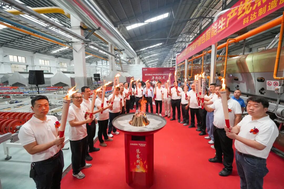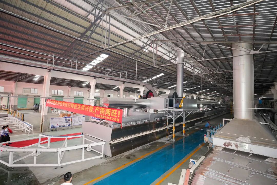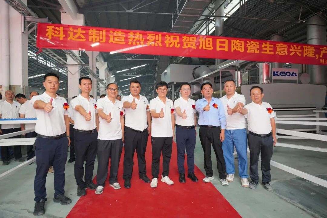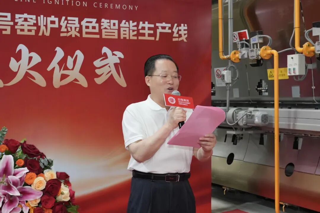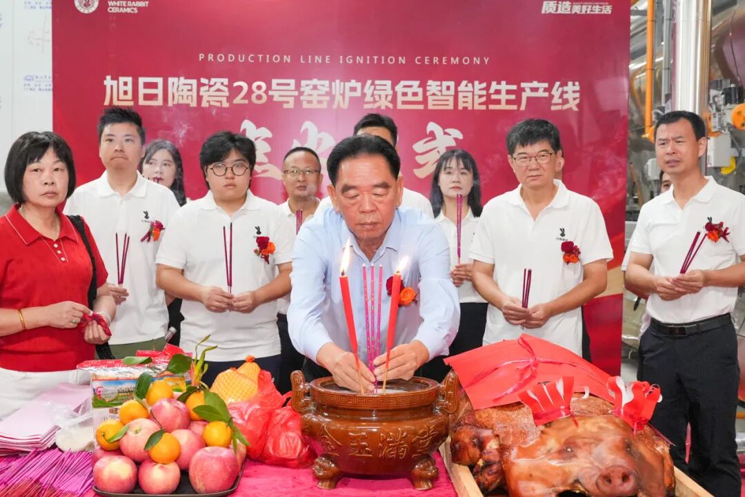 10月31日,珠海市斗门区旭日陶瓷有限公司(以下简称“旭日集团”或白兔瓷砖)28号窑炉绿色智能生产线点火仪式在珠海市白兔陶瓷有限公司隆重举行。旭日集团董事长黄英明,旭日集团总经理宁红军,旭日集团执行总经理、集团总厂厂长范怀瑞,科达制造股份有限公司销售总监裴树元,科达制造股份有限公司中南销区总经理舒建雄,佛山希望数码印刷设备有限公司销售部经理刘锦文,旭日集团执行常务副总经理兼集团销售运营中心总经理梁振东,旭日集团副总经理、集团总厂常务副厂长刘科琼,旭日集团副总经理、白兔瓷砖华东公司董事长黄芝霖,旭日集团副总经理、集团企业管理中心总经理、集团财监审计中心总经理方晓英,旭日集团法律顾问、清远市宏通投资有限公司总经理张凤翼,旭日集团董事长助理、旭日房产开发有限公司副总经理黄晓娴,旭日集团副总经理、集团设备部部长谢添,旭日集团副总经理兼任珠海市白兔陶瓷有限公司总经理、白兔二厂厂长龚晖,旭日集团副总经理、兼任集团墙地砖研发中心主任吴志坚,旭日集团副总经理、集团生产销售库存总调委员会总执行、集团销售运营中心总经理助理冯伟,旭日集团总厂副厂长兼任白兔二厂副厂长陈祚华,旭日集团总厂副厂长、外墙砖马赛克文化墅砖研发中心主任操龙胜,旭日集团白兔一厂厂长易庆军,旭日集团白兔一厂副厂长钟剑锋,旭日集团白兔二厂常务副厂长黄竞波,旭日集团白兔二厂副厂长李凯,旭日集团白兔二厂副厂长刘习龙,旭日集团总厂瓷砖窑炉烧成技术总工王刚,旭日集团财务中心总经理李整如,旭日集团采购中心总经理唐青锋等领导出席,共同见证这一重要时刻。这不仅标志着白兔瓷砖在生产制造能力上实现跨越式升级,更以“绿色科技”为笔、“智能制造”为墨,为集团书写“可持续发展”新答卷,为陶瓷行业高质量转型注入强劲动能。