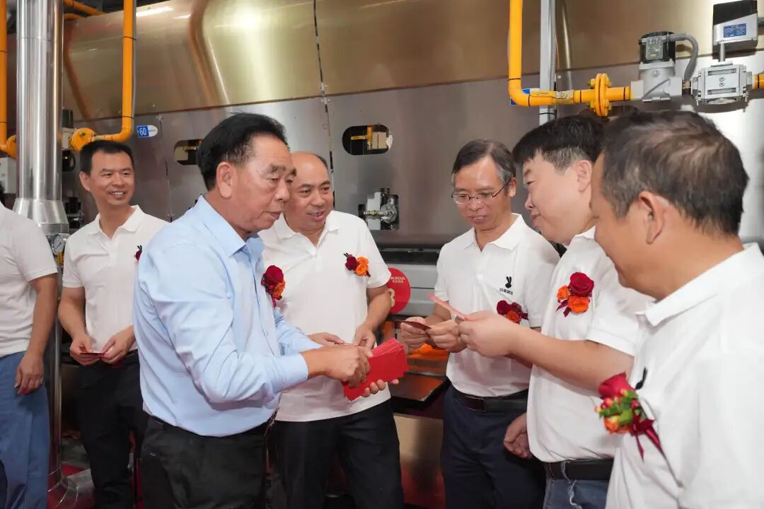旭日集团董事长黄英明缓步走入队伍中,将象征着新窑炉的吉庆、发展顺遂的心意红包逐一递至在场人员手中。现场掌声与欢呼声交织,火焰升腾,象征着活力与生机,也标志着28号窑炉绿色智能生产线成功点火,白兔瓷砖发展历程又掀开了崭新的一页。