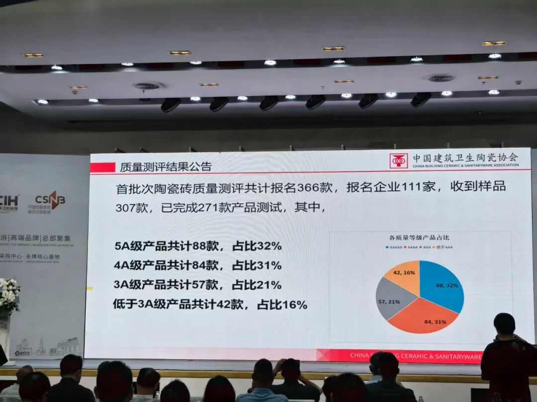 首批次陶瓷砖质量测评共计报名366款,307款,已完成271款产品测试。其中,5A级产品共计88款,占比32%;4A级产品共计84款,占比31%;3A级产品共计57款,占比21%;低于3A级产品共计42款,占比16%。