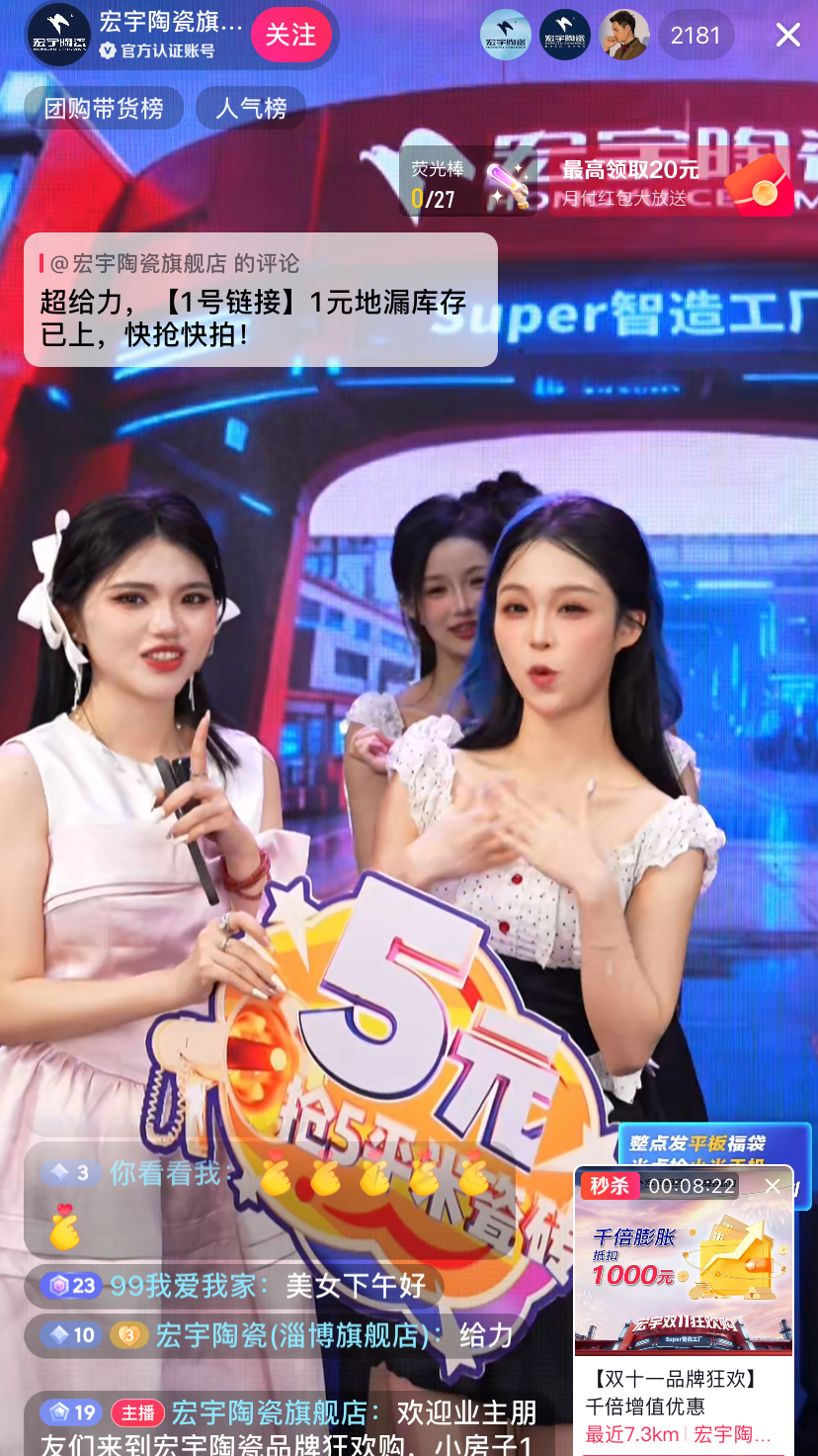 9125单!宏宇陶瓷双11狂欢购,门店持续增长的好生意