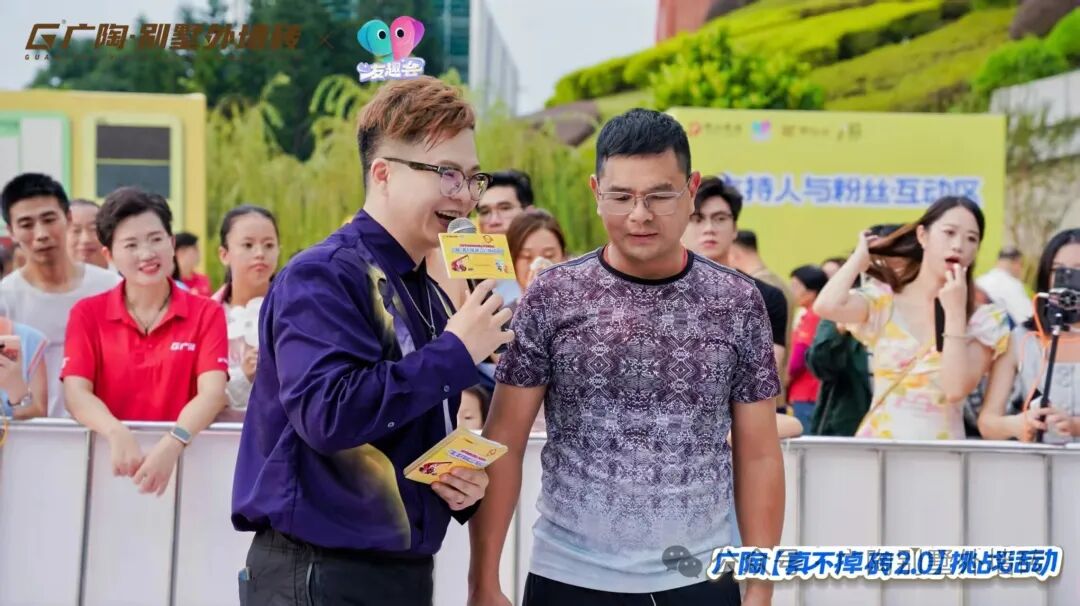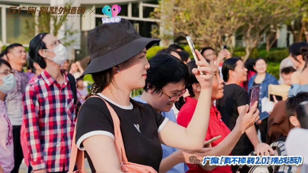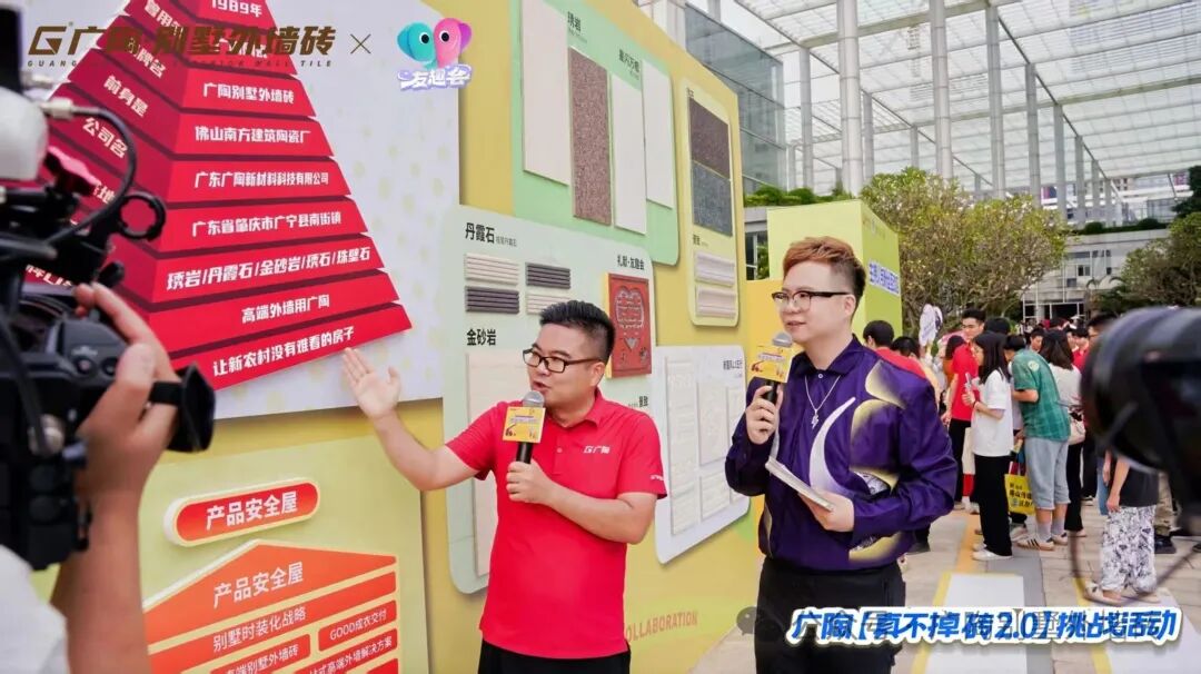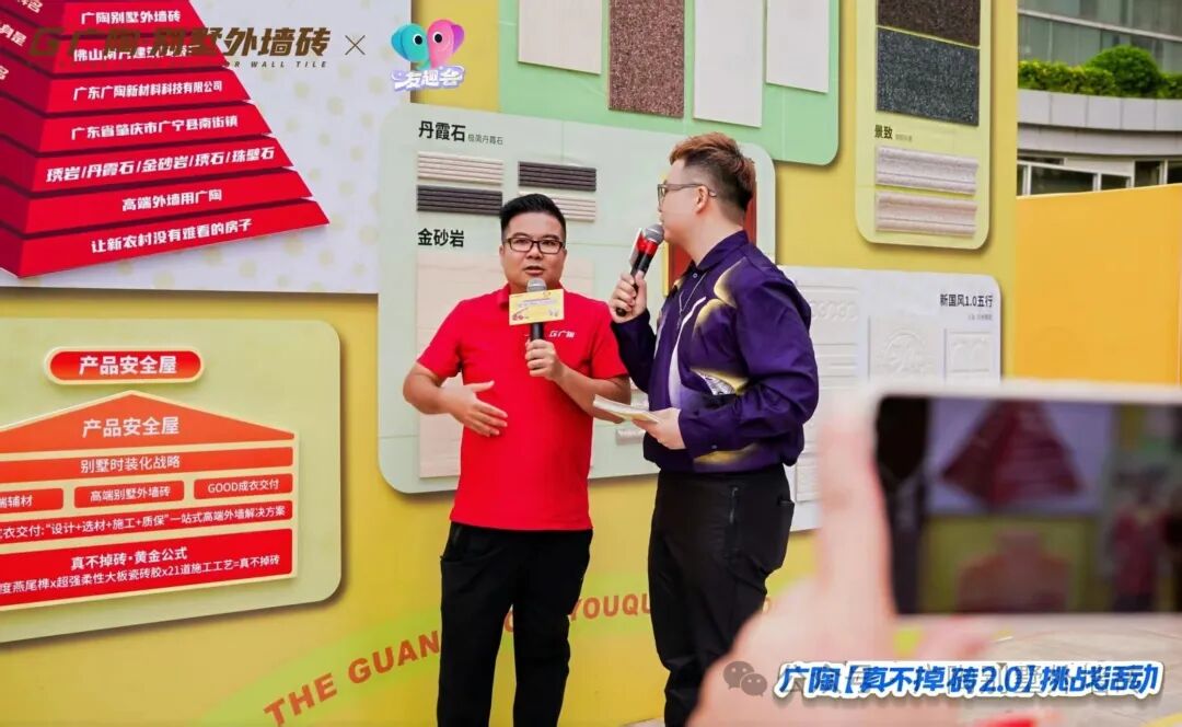 本活动还特邀佛山电台知名主持人萧桦坚坐镇,全程讲解。更有资深行业媒体与优秀服务商代表全程直播加持!佛山+、醒目视频APP,醒目视频视频号、华夏陶瓷网、陶瓷信息、陶瓷资讯等数十家知名媒体进行现场全网直播,以及广陶官方抖音号、视频号,还有来自全国各地服务商代表也在现场全程直播挑战盛况。线上观众踊跃参与,线下嘉宾积极互动,双线联动、热闹非凡,全网超百万人通过直播共同鉴证这场全程高能、颠覆认知、重新定义外墙新高度的精彩活动。