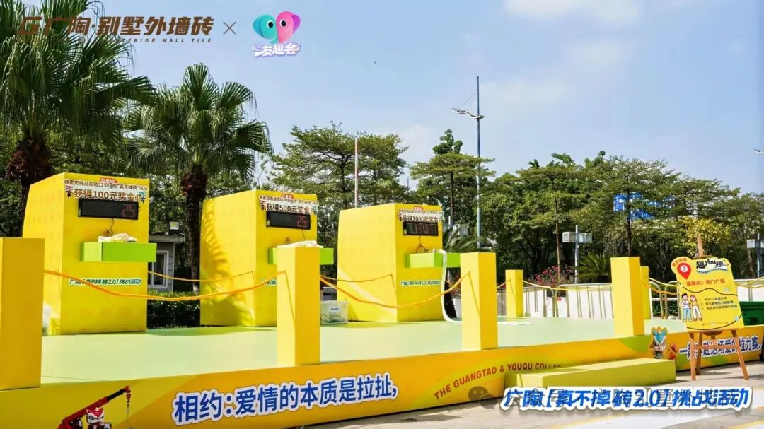 作为活动重磅环节,“爱情拉力赛”邀请现场观众搭档组队,合力拉动特制装置,配合大屏实时显示攀升的拉力数据,直观见证默契与力量的双重迸发,既获得协作乐趣,更能感受广陶超韧弹性瓷砖百粘胶的强悍抗拉力,全程趣味与爱意拉满~还有佛山传媒知名主持人——邵瑞云全程热情控场,观众们呐喊助威,热烈氛围吸引了大批市民驻足围观与参与!