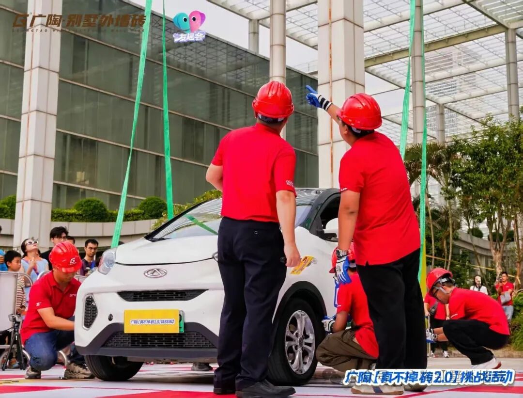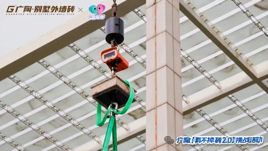 【真不掉砖2.0】吊车挑战通过“起重吊机”吊挂【广陶产品测试吊块】,并由【广陶产品测试吊块】和“平衡杆”连接绑定被吊车辆(车重2吨)进行吊起挑战,挑战以吊起车辆四轮离地10CM,并持续1分钟即为挑战成功!通过极端承重场景测试,让产品粘接力和可靠性数据化、可视化。