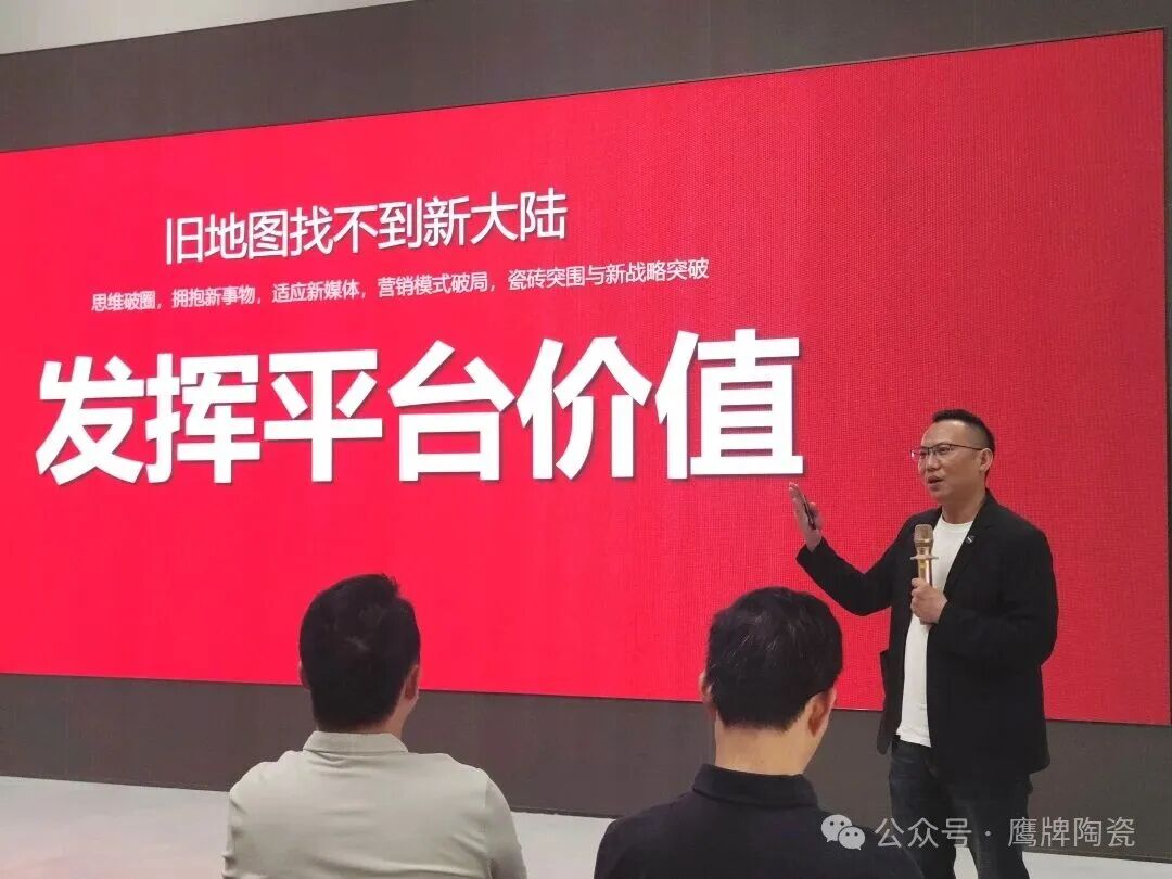 旧地图找不到新大陆。陈总号召全体营销人员,积极发挥“天安+鹰牌”的平台优势,拥抱新媒体,凭借营销模式破局,实现瓷砖突围与新战略的突破,为打赢2025收官之战奠定坚实基础。