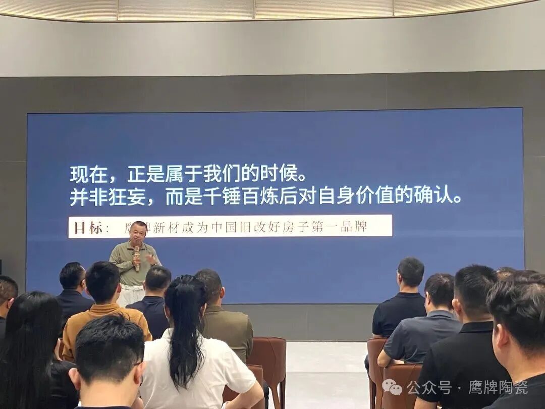 面对当下以鹰牌新材布局旧改蓝海的重要战略举措,全体鹰牌人当迅速完成思维转变,在稳住陶瓷基业的同时,发力鹰牌新材,打造优势区域,开拓下沉市场。