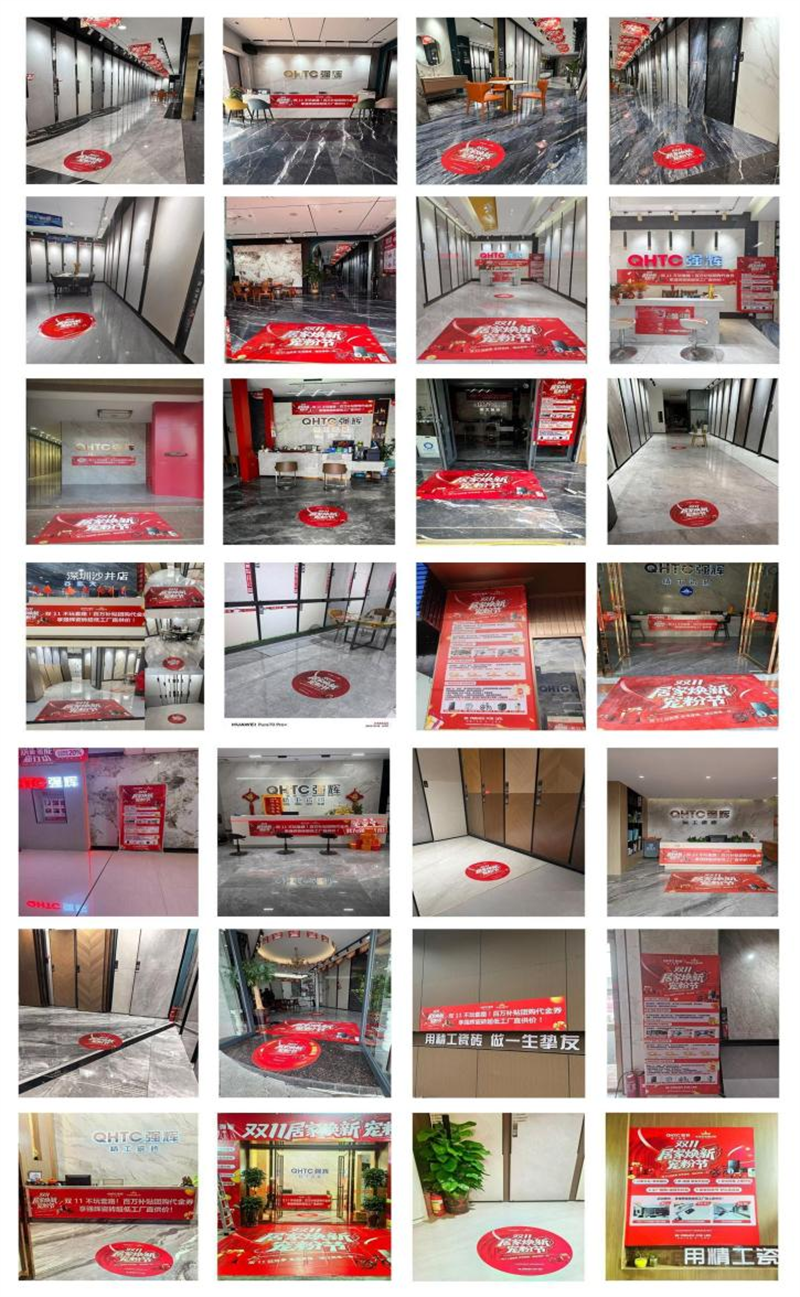活动期间,强辉两广地区终端门店火力全开,统一亮眼的活动布置营造出浓厚的狂欢氛围,强辉终端团队以专业的服务和饱满的热情,为每一位业主提供专业的购砖解决方案。