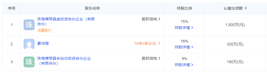 11月12日,珠海晶瓷电子科技有限公司(下文简称“珠海晶瓷”)发生投资人变更,其中,珠海横琴晶途投资合伙企业(有限合伙)(以下简称“珠海横琴晶途”)认缴出资额1500万元,持有珠海晶瓷75%股份,成为珠海晶瓷的最大控股股东。公开资料显示,珠海晶瓷的经营范围包括半导体分立器件制造、半导体器件专用设备制造、特种陶瓷制品制造等,拥有陶瓷基板钻孔加工等技术专利。