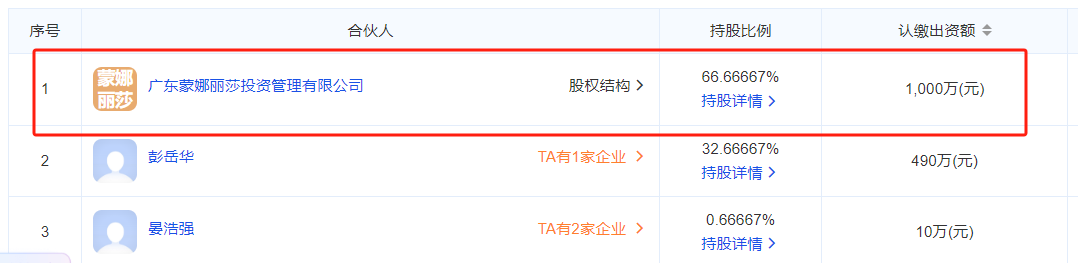 据工商资料,珠海横琴晶途最大的出资人为广东蒙娜丽莎投资管理有限公司(下文简称“蒙娜丽莎投资”),出资比例为66.67%,而蒙娜丽莎投资系上市陶企蒙娜丽莎的全资子公司。