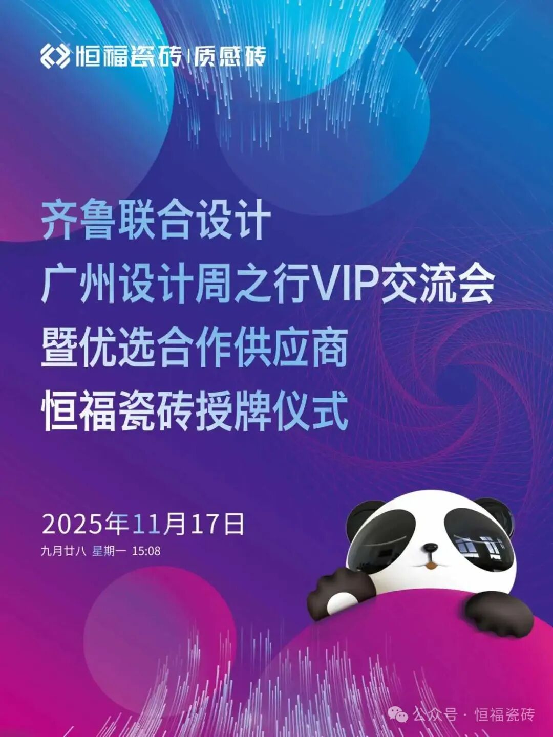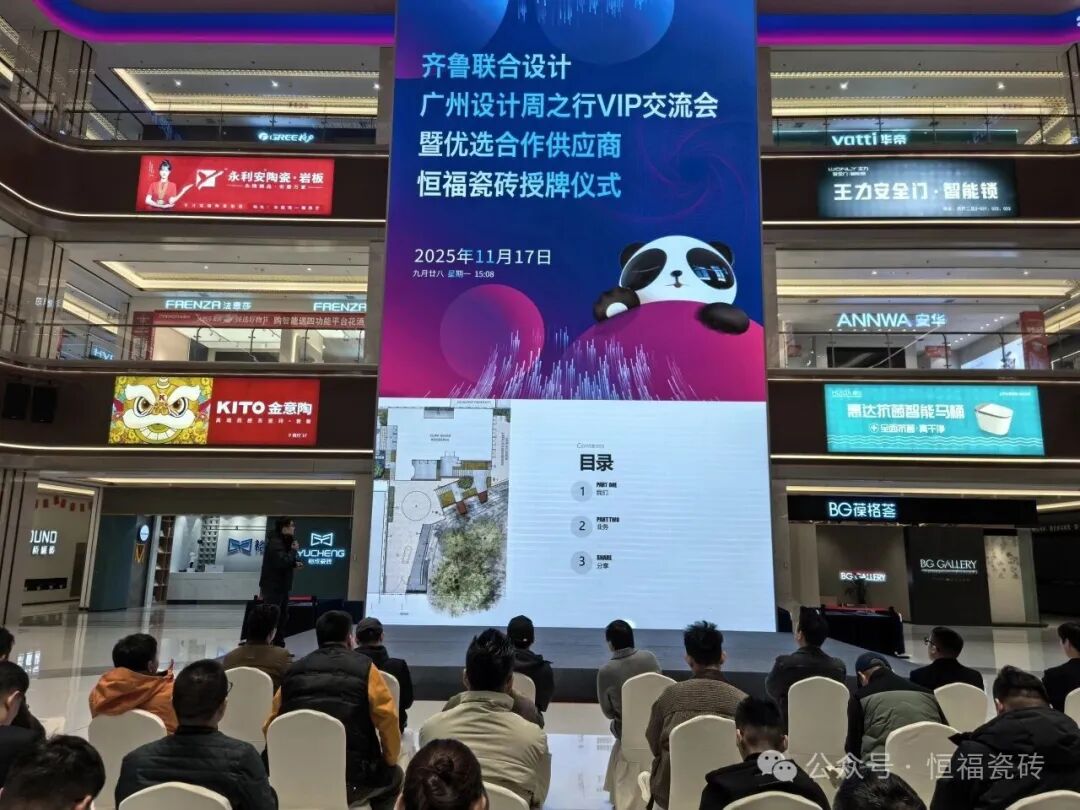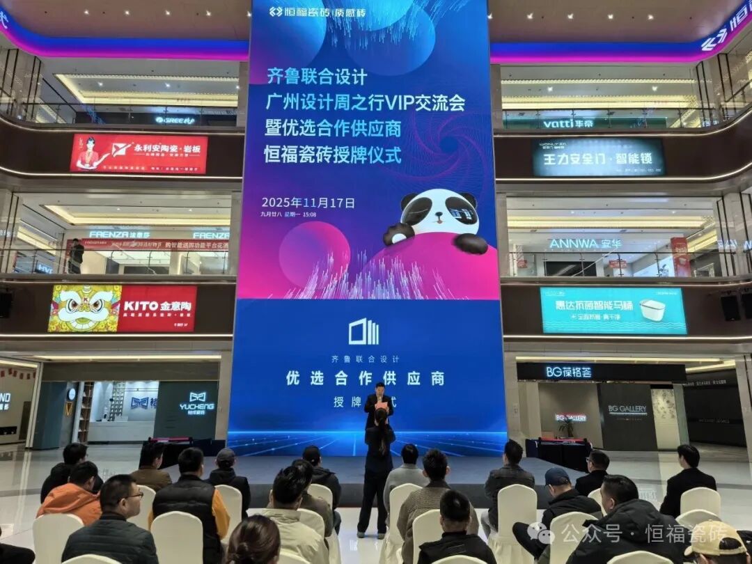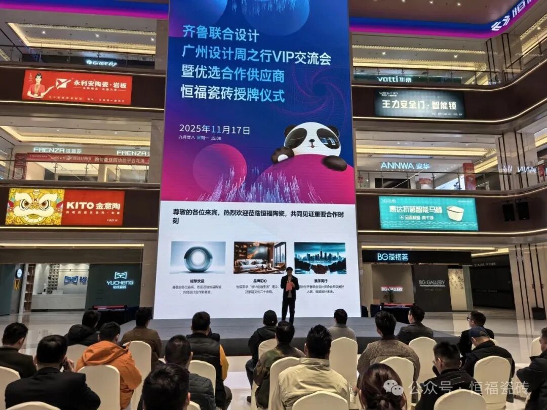11月17日,济南金牛建材家居博览中心内星光熠熠,思想汇聚。由恒福瓷砖济南经销商主办的“齐鲁联合设计广州设计周之行VIP交流会暨优选合作供应商恒福瓷砖授牌仪式”在此隆重启幕。这是一场设计与材质的深度对话,一次品牌与渠道的强强联合,更标志着恒福瓷砖在齐鲁大地的战略布局迈入了全新的阶段。