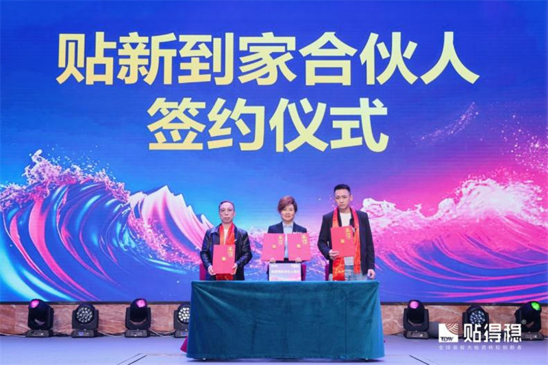 此次合伙人签约,是贴新到家整合“产品、人才、服务、技术”的战略升级,旨在通过绑定核心手艺人伙伴,既守住专业手艺的根本,又让伙伴共享品牌发展红利,构建差异化竞争优势。贴新到家培训导师唐家贵先生与全爱国先生,是贴得稳“手艺人成长为事业伙伴”理念的典型代表,二人深耕铺贴领域多年,兼具专业底蕴与务实精神。在全场嘉宾的见证下,二人与徐总共同签署贴新到家合伙人协议,这一环节不仅标志着三方正式开启服务端深度合作,更意味着贴得稳将以“伙伴模式”进一步拓展铺贴服务蓝海,为行业服务标准化发展树立新范本。