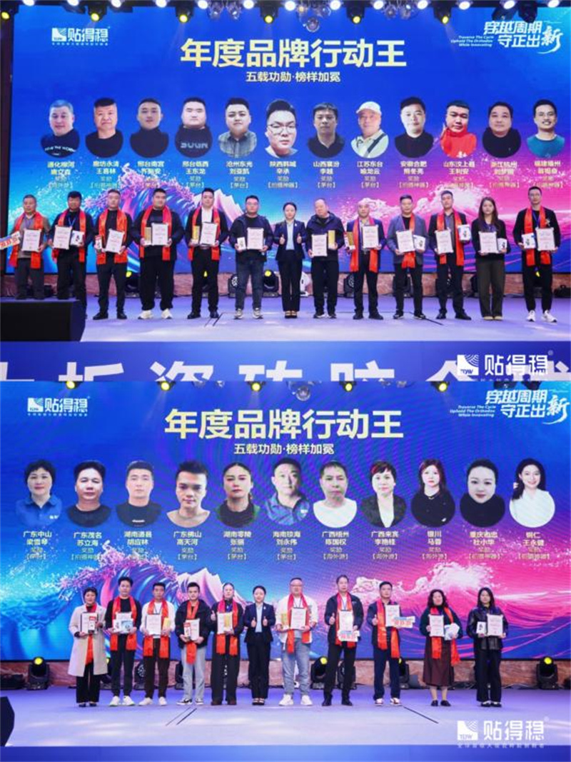 五载耕耘铸巅峰,全球同心启新程!一场汇聚行业精英、见证品牌崛起的年度盛会,于佛山盛大启幕并圆满落幕。本次“穿越周期・守正出新——贴得稳五载巅峰全球财富盛典”,以五周年为契机,集结海内外合作伙伴、行业大咖与核心团队,共忆奋斗征程、共话发展机遇、共绘全球蓝图,用坚守与创新书写中国岩板大板瓷砖胶的全球化篇章!