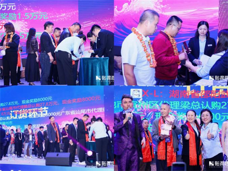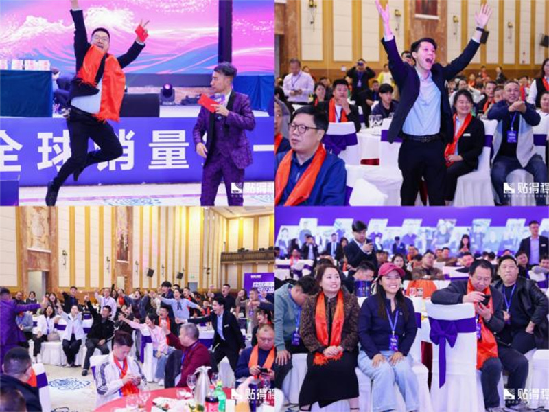 晚宴期间,幸运抽奖、集赞颁奖、海外代理商祝福视频等环节轮番上演,让现场氛围持续升温。每一次抽奖都伴随着阵阵欢呼;朋友圈、视频号、抖音三大平台“荣耀见证官”集赞获奖名单揭晓。此外,身在海外的贴得稳代理商特意录制的祝福视频,让在场嘉宾感受到“贴得稳全球大家庭”的温暖;员工节目与乐队串烧轮番登场,动感的旋律、热情的舞蹈,让大家在欢声笑语中共享喜悦,为这场巅峰之夜画上圆满句号。