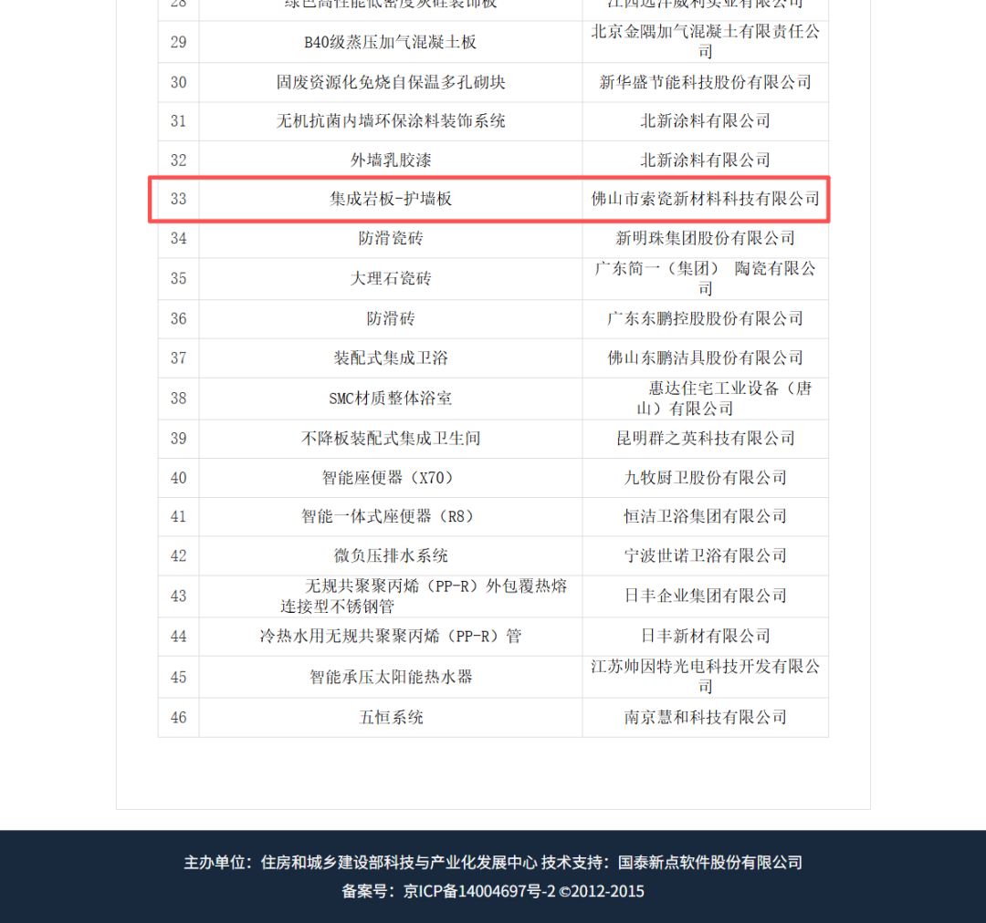 索瓷集成岩板入选住建部“好房子”建设适用建材名单
