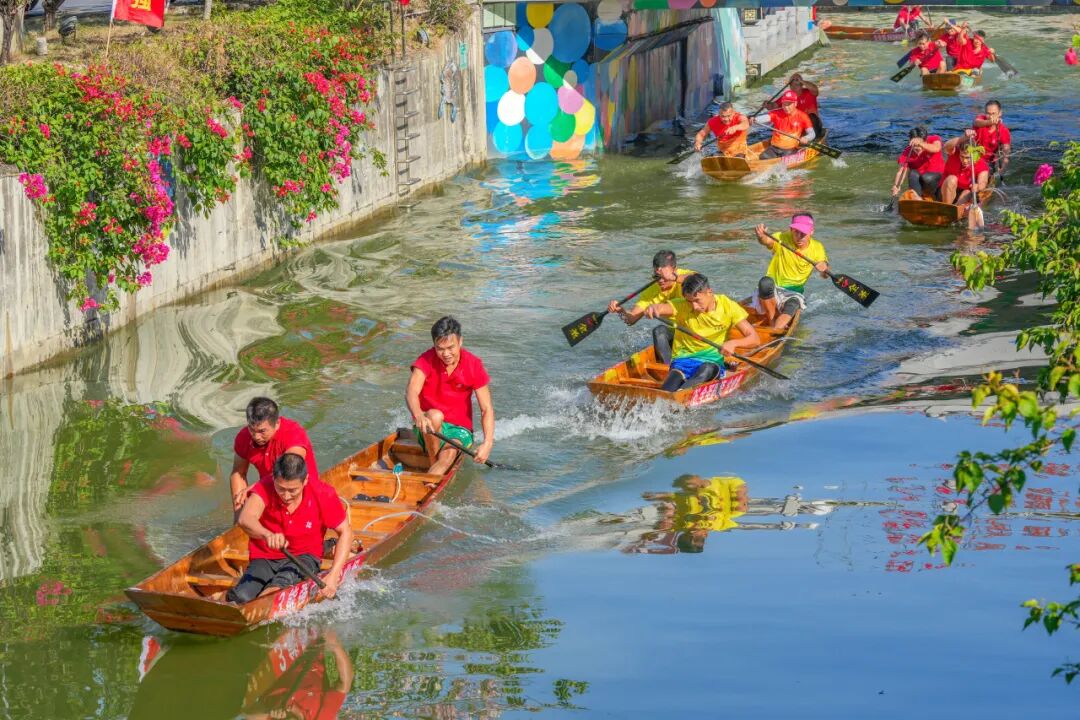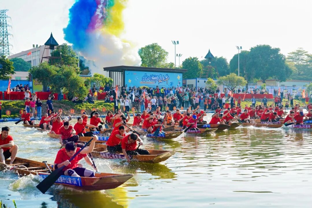 作为水乡传统竞技项目,龙舟比赛的 “放龙”仪式承载着深厚文化底蕴,寓意着“力争上游”的拼搏精神,也是赛前必不可少的精彩环节。