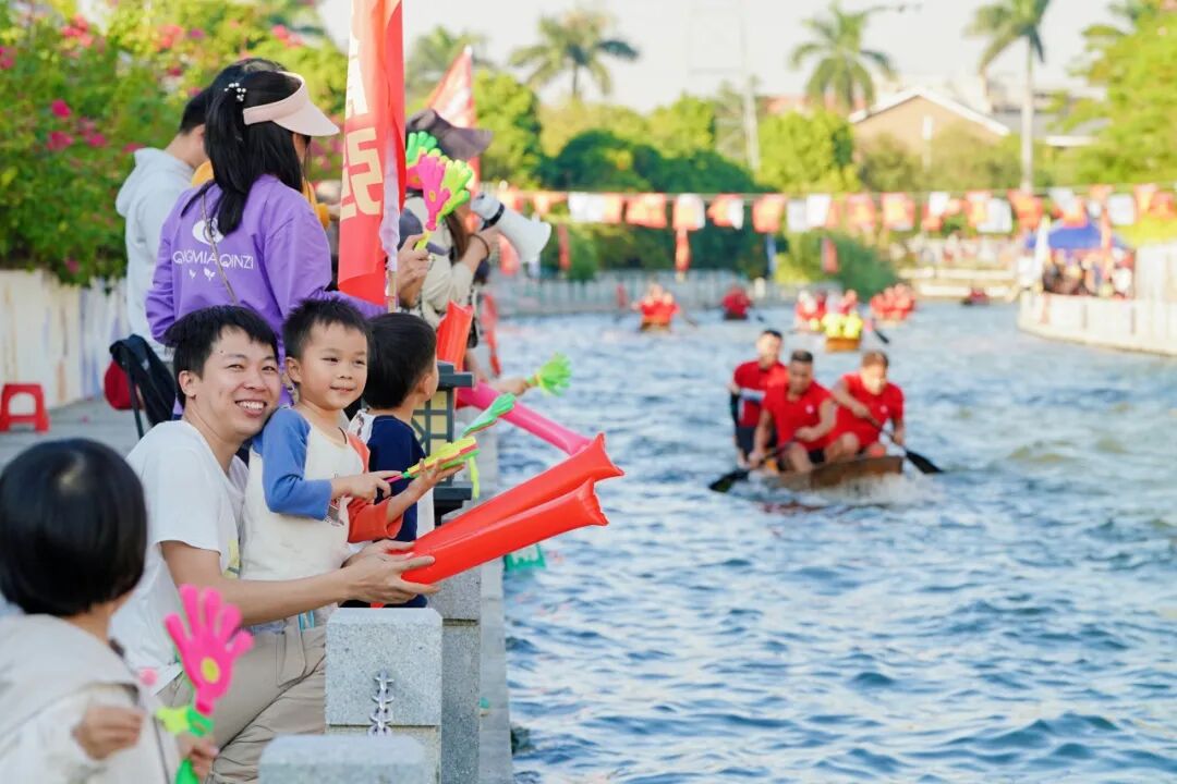 强辉龙舟队全体队员心往一处想,劲往一处使,响亮的呐喊声凝聚成无坚不摧的力量,队员们俯身挥桨,齐心协力劈波斩浪的模样,成为紫南水乡河道上最耀眼的风景线。