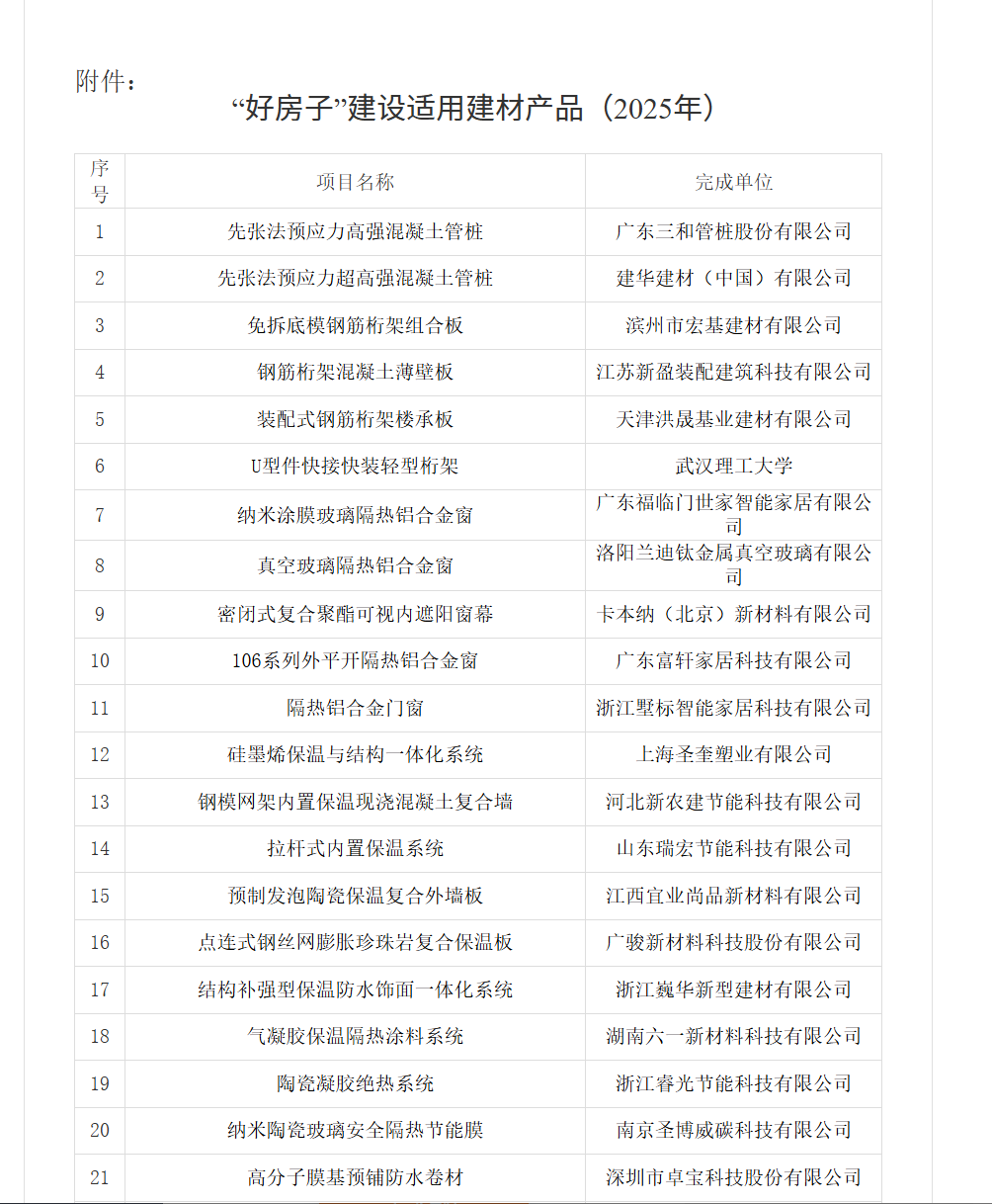 日前,住建部科技与产业化发展中心正式公示《“好房子”建设适用建材产品(2025年)》名单,46项建材产品脱颖而出。其中,建筑陶瓷行业表现亮眼:索瓷公司的集成岩板-护墙板、简一的大理石瓷砖、新明珠和东鹏的防滑砖等产品成功入选。