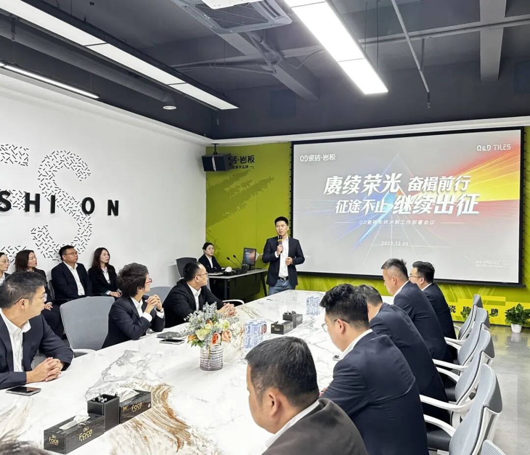 12月5日,QD瓷砖2025年终冲刺工作部署会议在佛山总部热血召开。鏖战正酣,责任上肩!大会旨在全面动员、统一思想,向2025年度指标发起总攻。QD瓷砖副总经理王茂盛统率全体营销精英齐聚一堂,明确方向,部署任务,凝聚共识,以昂扬斗志与坚定决心,吹响了决胜全年的冲锋号角。
