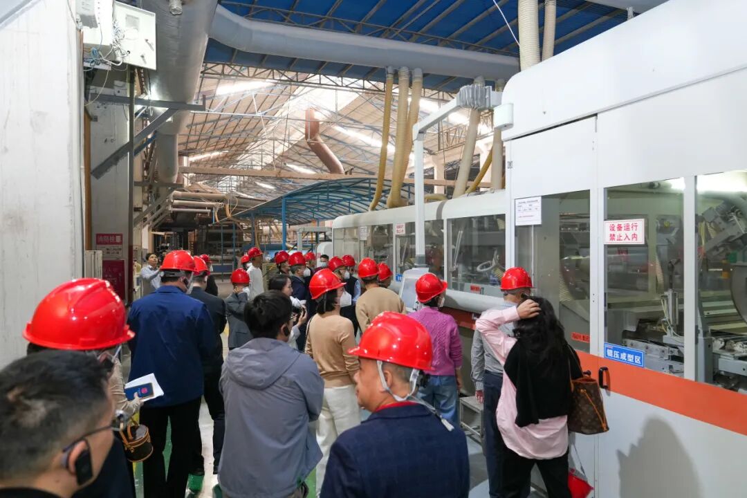 在肇庆智能工厂,考察团近距离参观考察了意大利萨克米岩板整线、大吨位压机及全温控窑炉等高度智能化生产线的运行,从精准的原料配比到高效的成品输出,充分感受到“匠心智造·中国能强”的硬核实力。