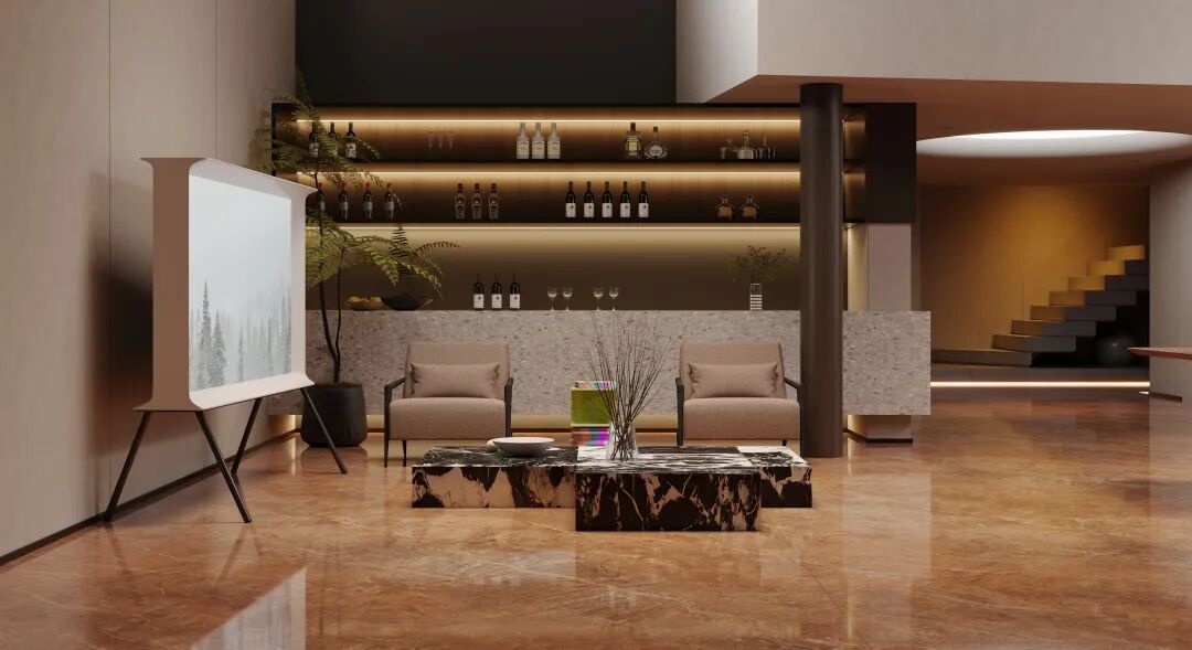 「星河流砂」采用彩晶工艺,凭借多角度晶体折射技术,使瓷砖表面呈现不一样的流动色彩,为空间注入蓬勃生命力。